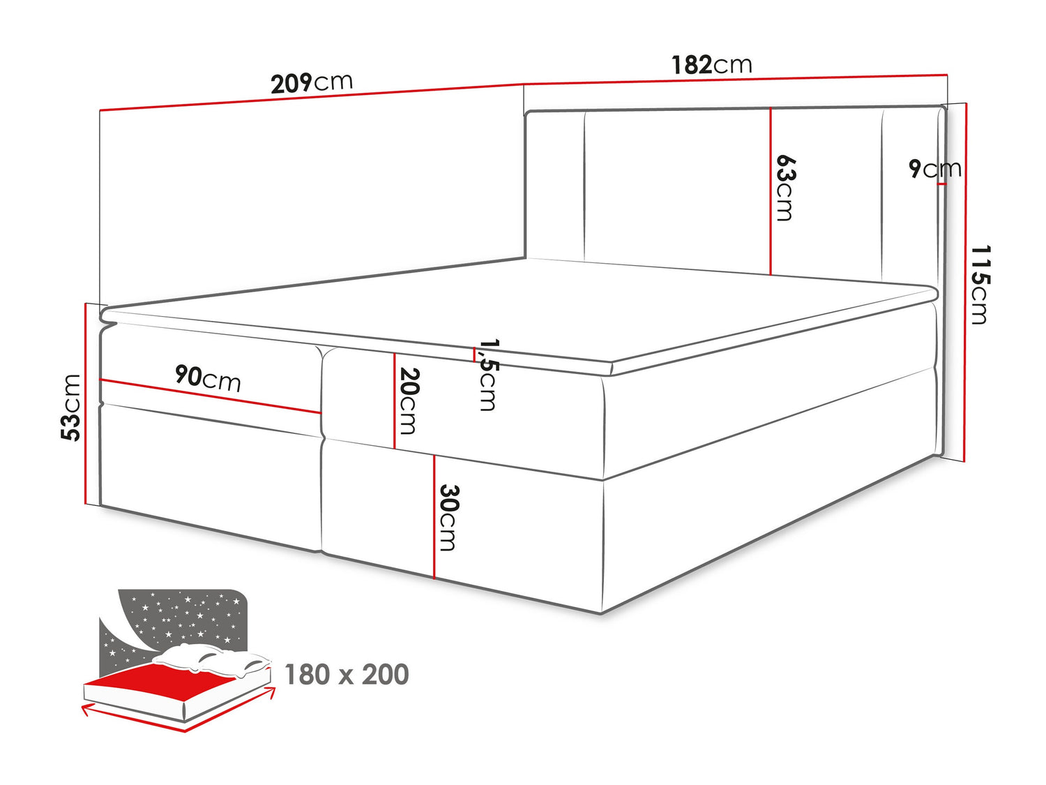 Fejforma méretei115 x 182 x 9 cm