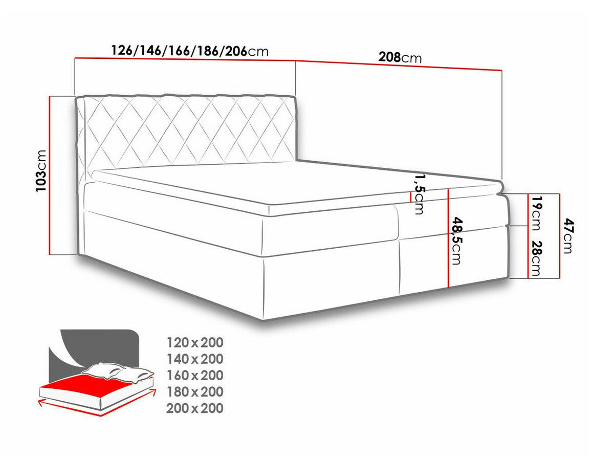 Kontinentális ágy Paros (Narcyz), Szín: Velluto 7, Alvó felület mérete: 120 x 200 cm