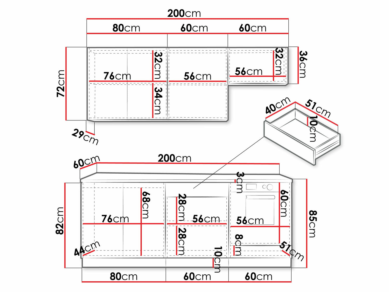 Szekrények magassága82 cm