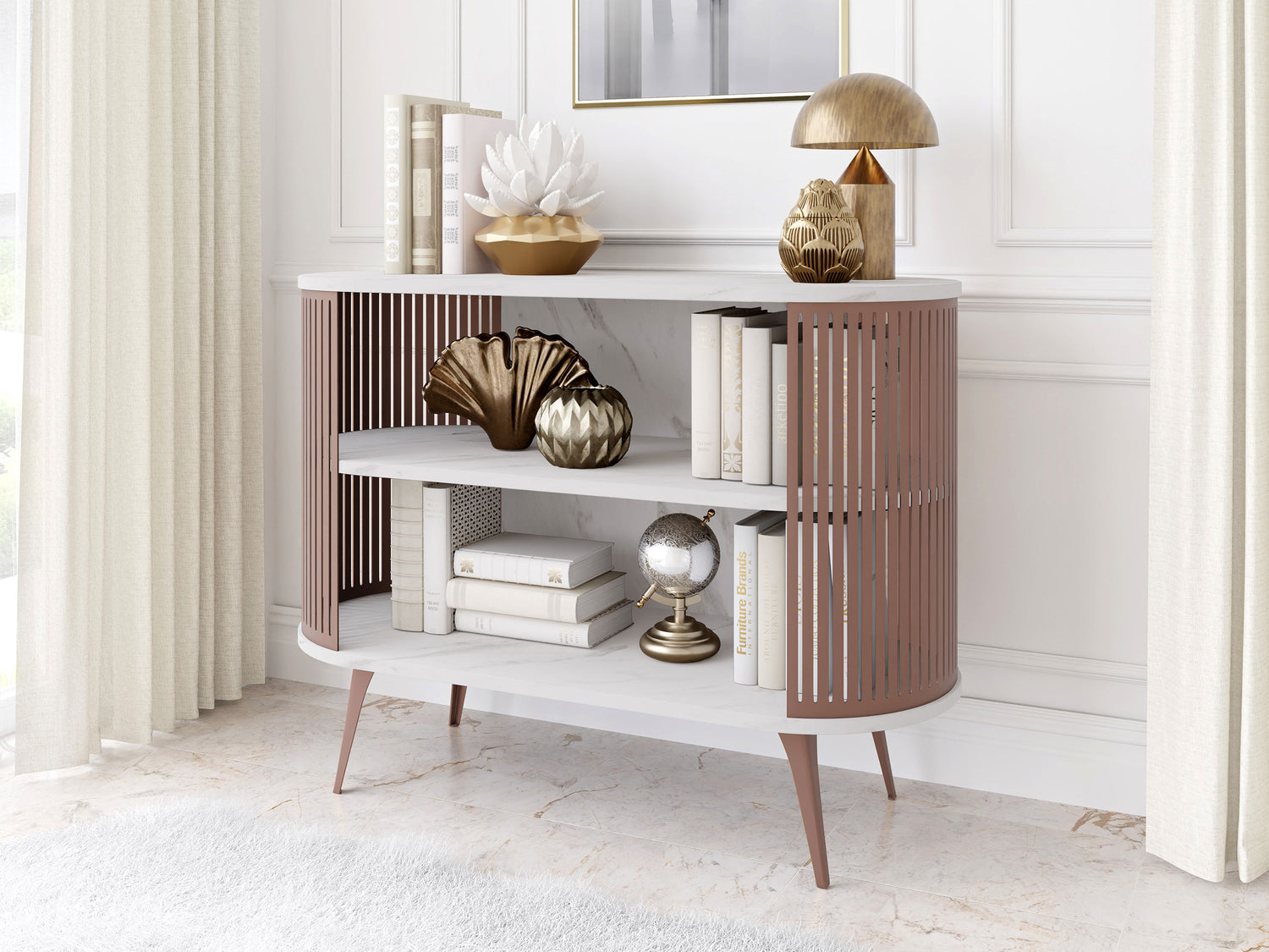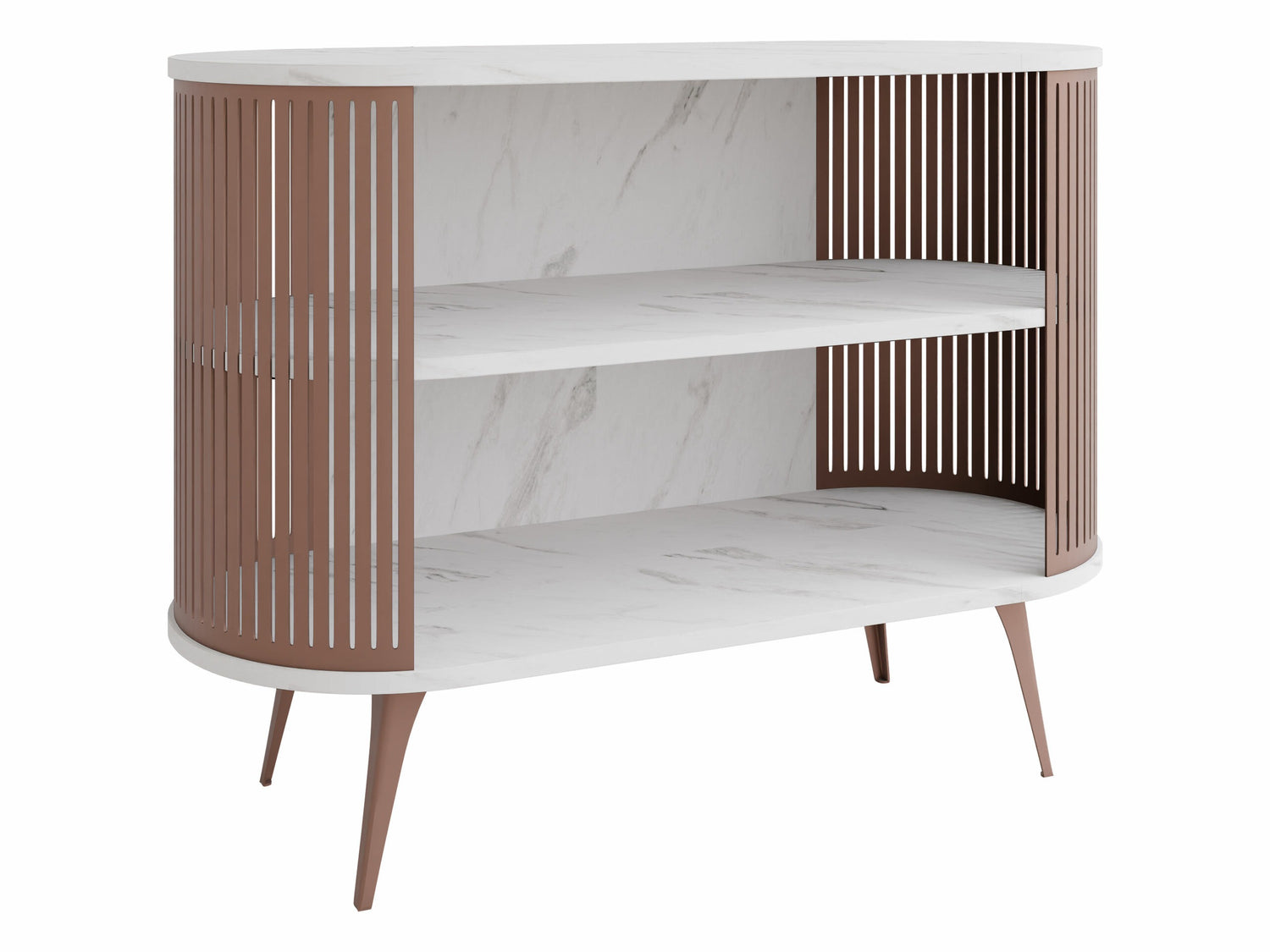 Könyvespolc Komoda ROENNI Miedziany, Szín: Rózsaszín + Fehér márvány