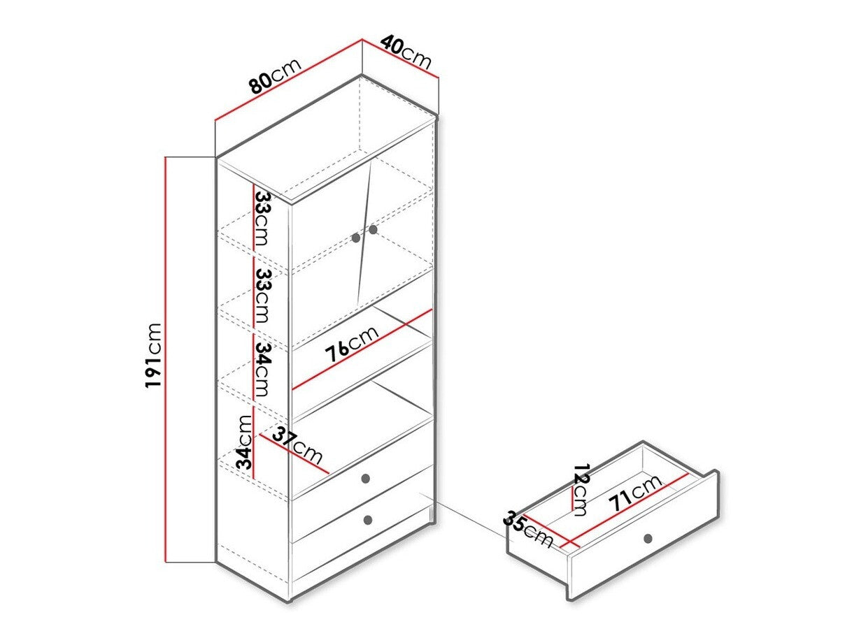 Könyvespolc Nero 4 (Wurak), Szín: Artisan tölgy + Fehér + Szürke