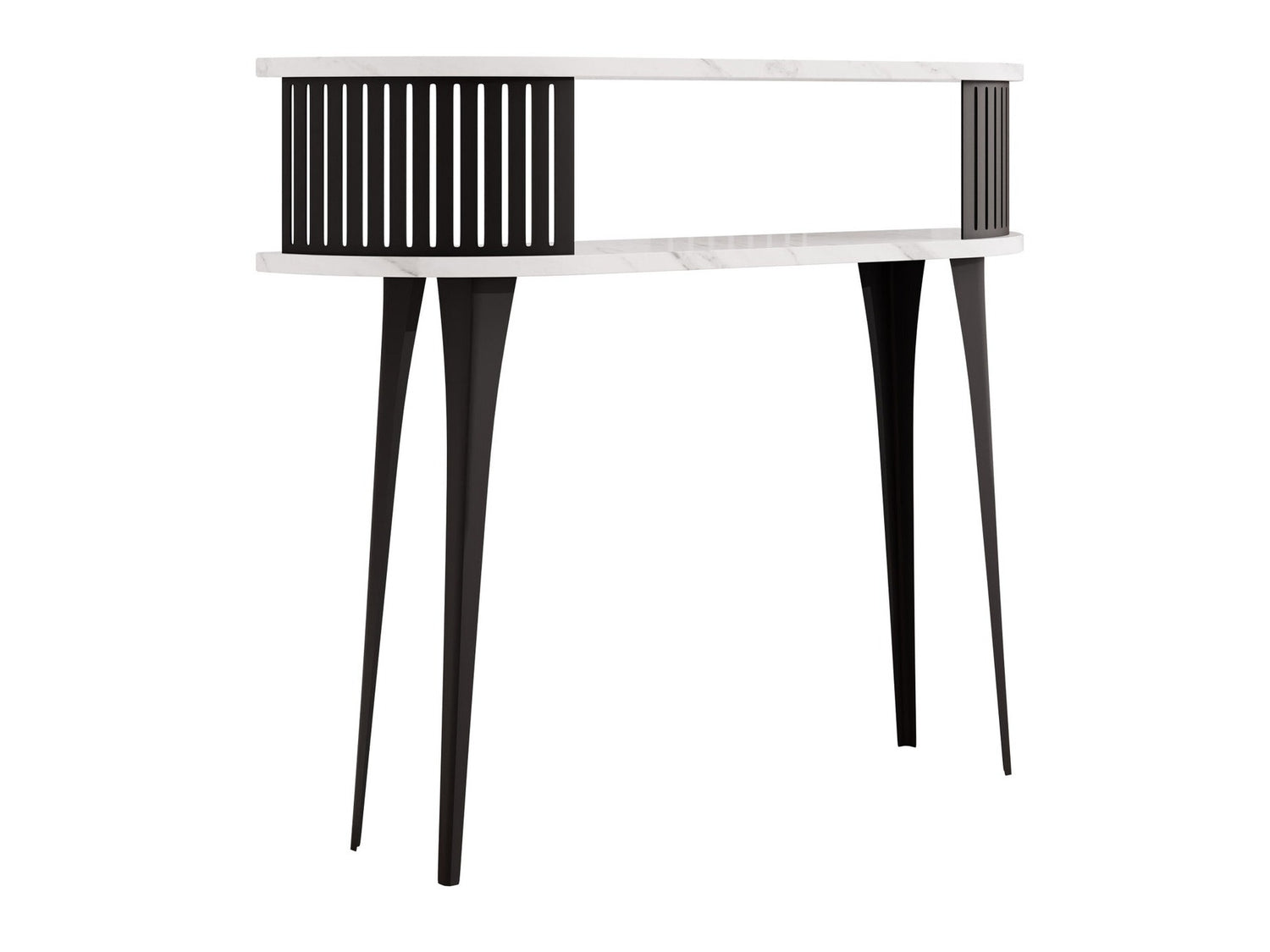 Konzolasztal Konsola owalna ROENNI, Szín: Fekete + Fehér márvány