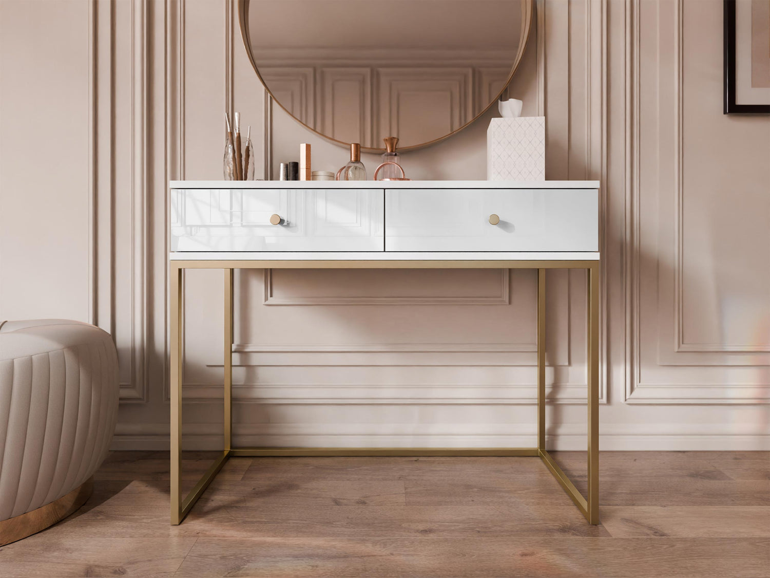 Konzolasztal Toaletka ESIPIX Biały połysk Kolor nóżek: Złoty (Fehér)