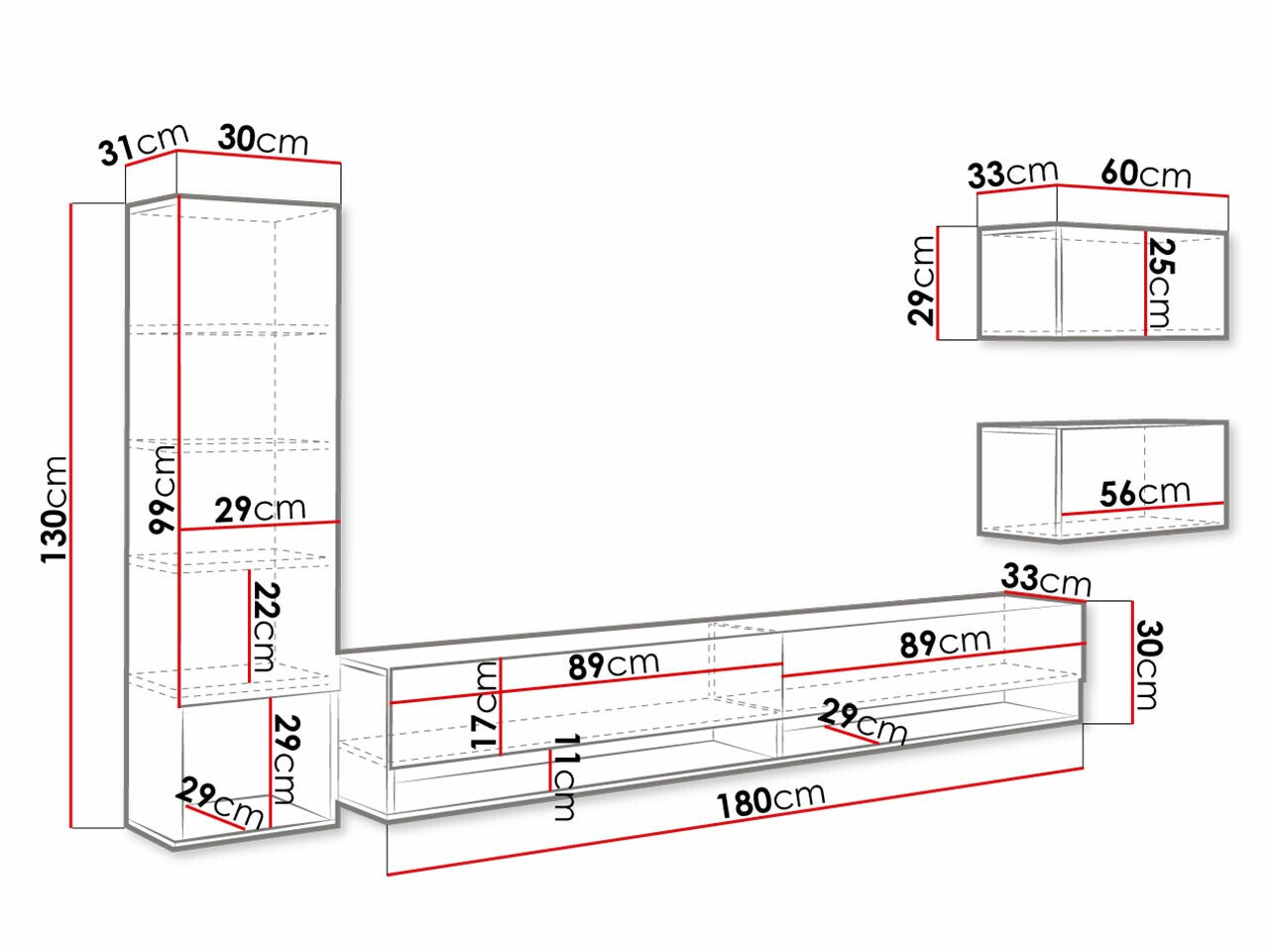 Nappali szett Amadeo (Wikez), Szín: Matera szürke + Fényes fehér, Led világítás: Igen