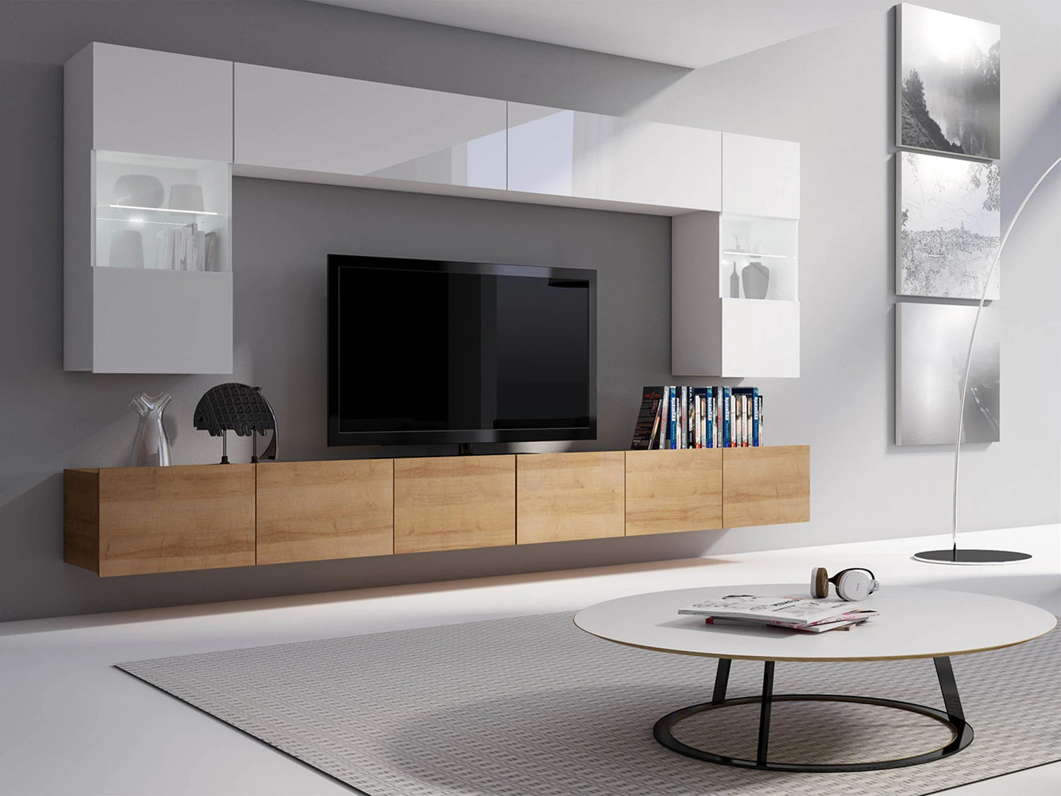 Nappali szett Calabrini (Bralani I), Szín: + Fehér + Fényes fehér, -világítás: Fehér