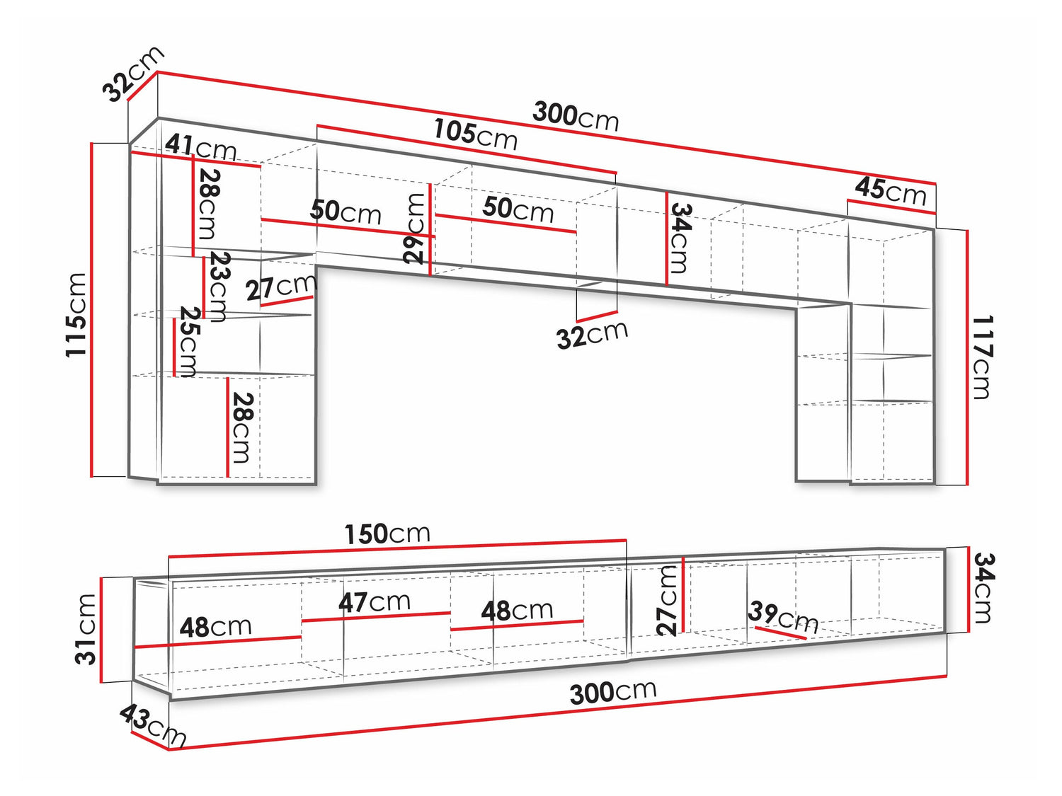 TV asztal méretei31 x 300 x 43 cm