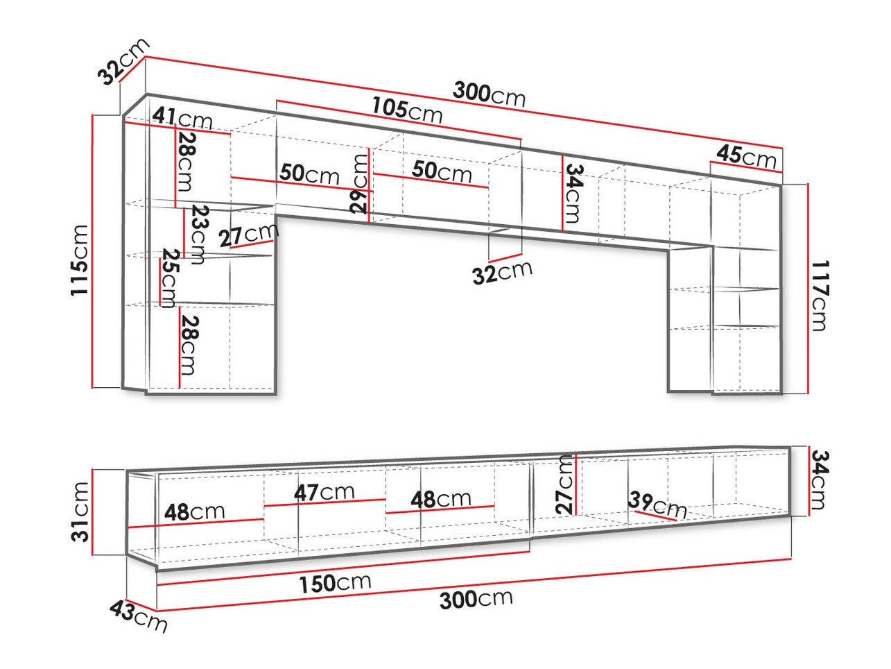 Függesztett szekrény méretei34 x 210 x 32 cm