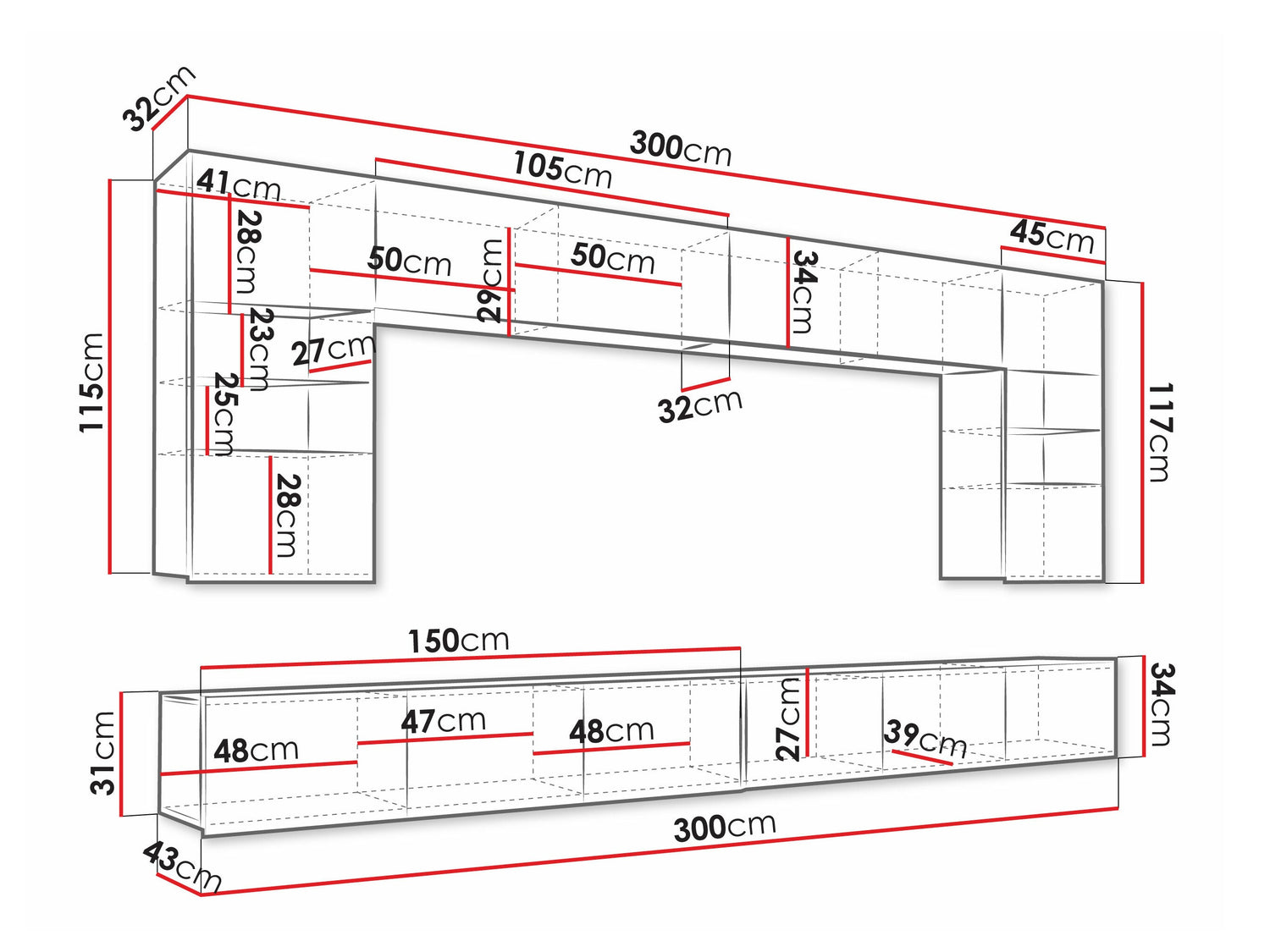 TV asztal méretei31 x 300 x 43 cm