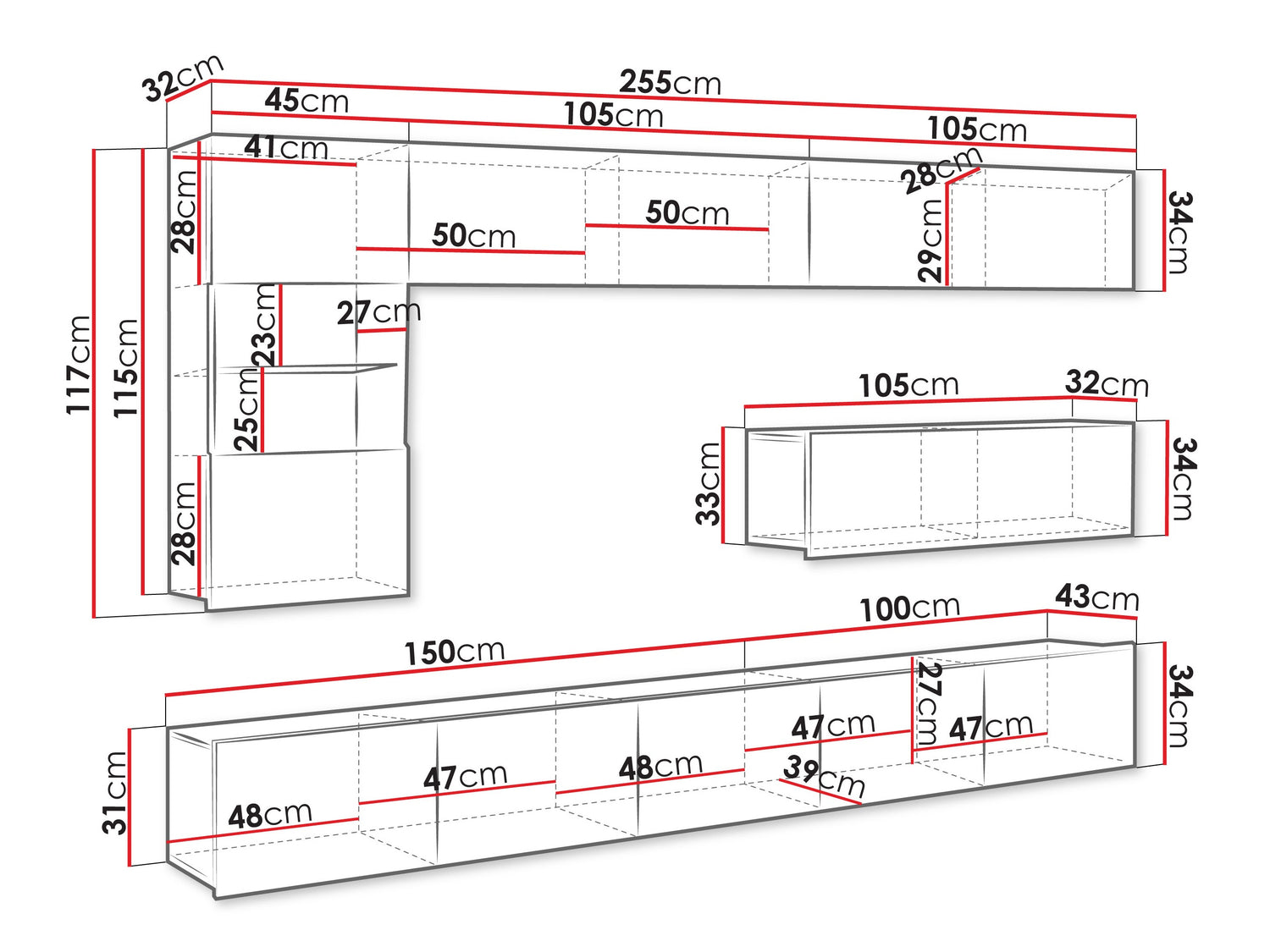 Függesztett szekrény méretei34 x 105 x 32 cm