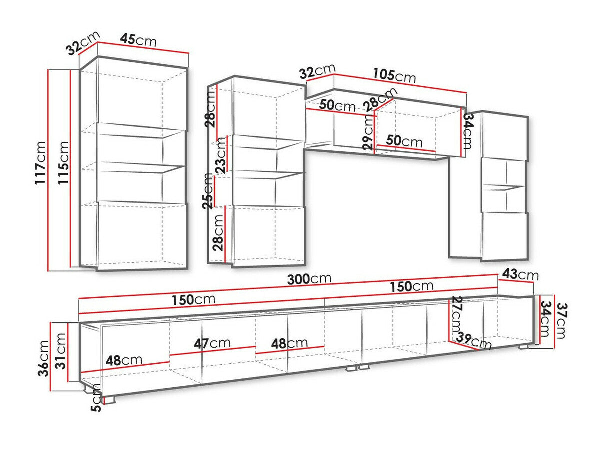 Nappali szett Calabrini (Bralani V, Led világítás: Ez kék, Szín: Fehér + Fényes fehér