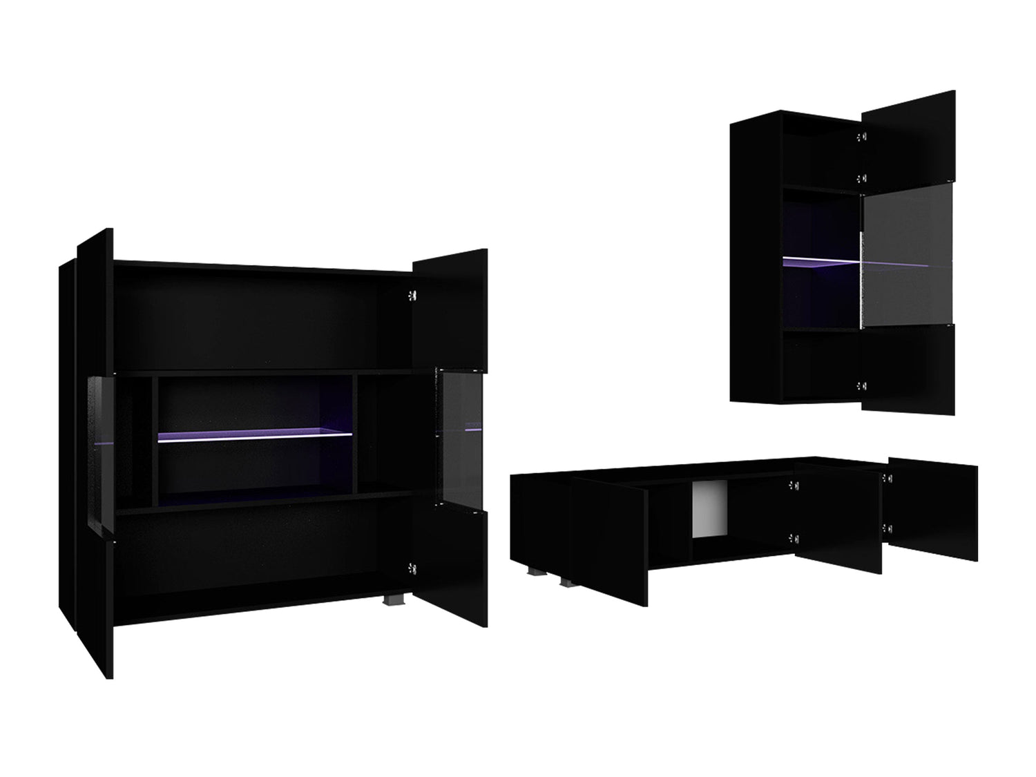 Nappali szett Calabrini (Bralani VII), Szín: Fehér + Fényes fehér, -világítás: Kék