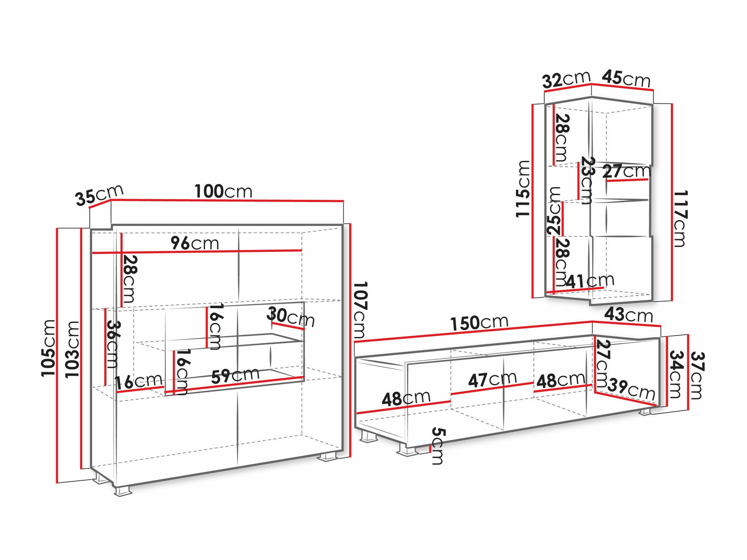 TV asztal méretei37 x 150 x 43 cm