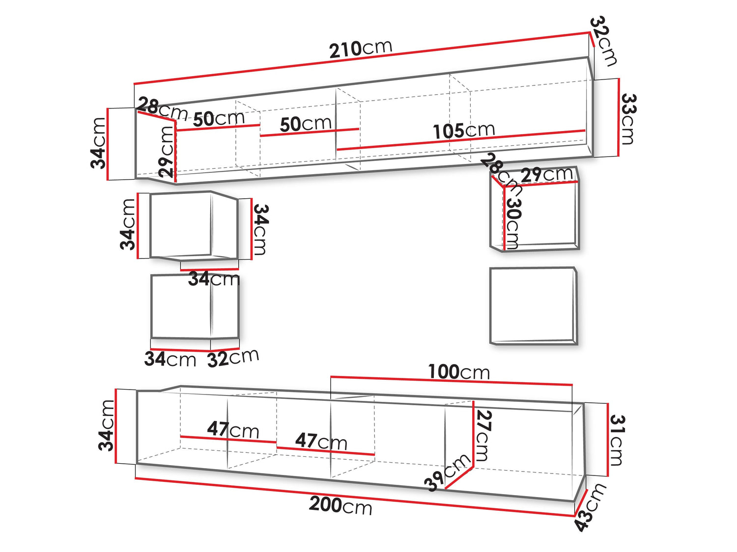 Függesztett szekrény méretei34 x 210 x 32 x 34 x 28 cm