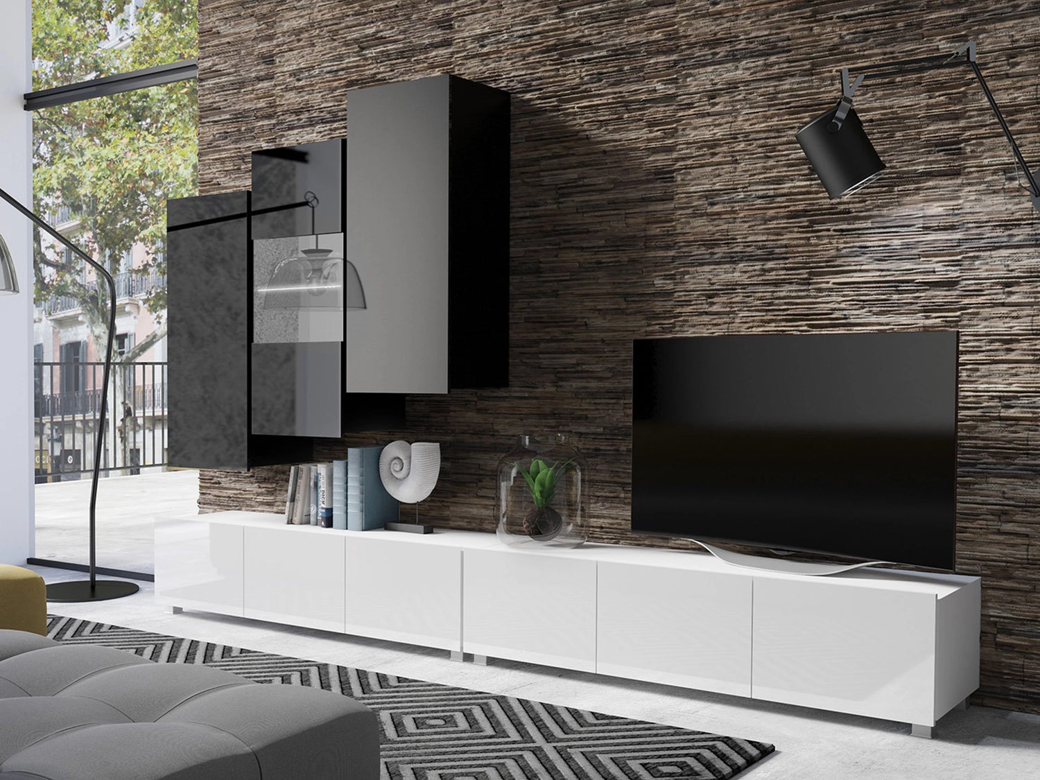 Nappali szett Calabrini (Bralani XVII), -világítás: Fehér, Szín: Fényes fehér + Fényes fekete