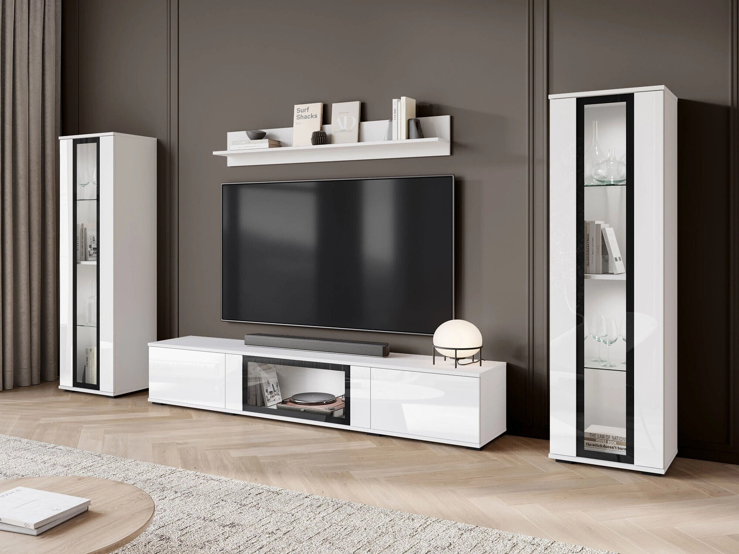 Nappali szett CARO, Szín: Fehér + Fényes fehér, Led világítás: Igen