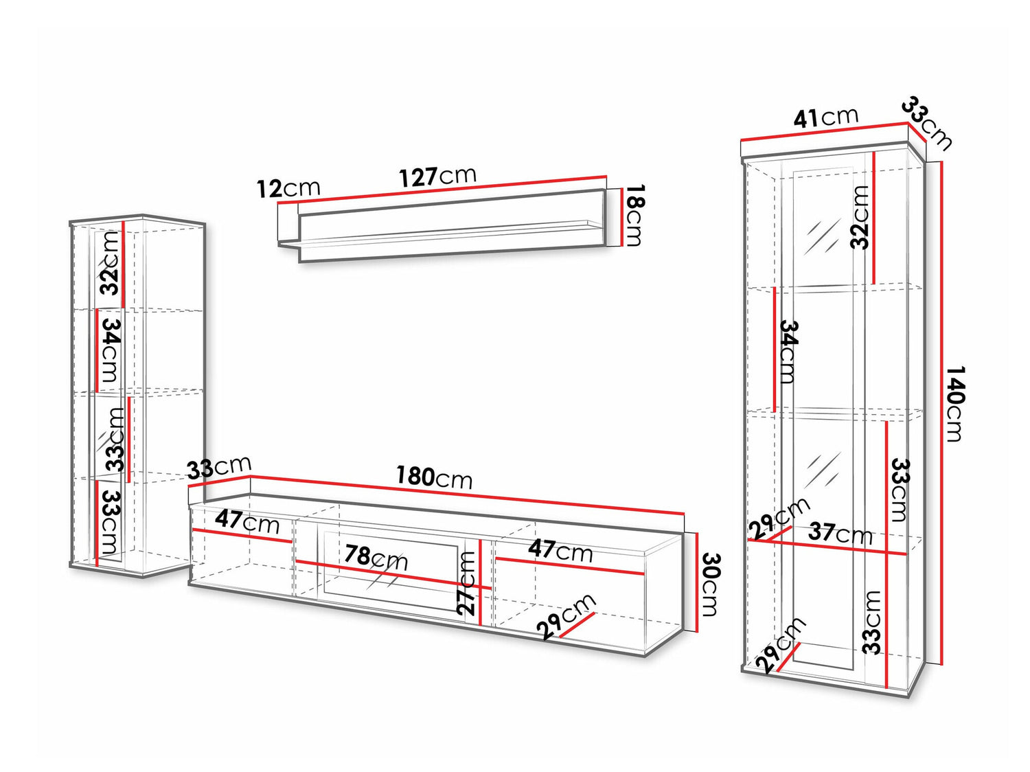 Szekrény méretei140 x 41 x 33 cm