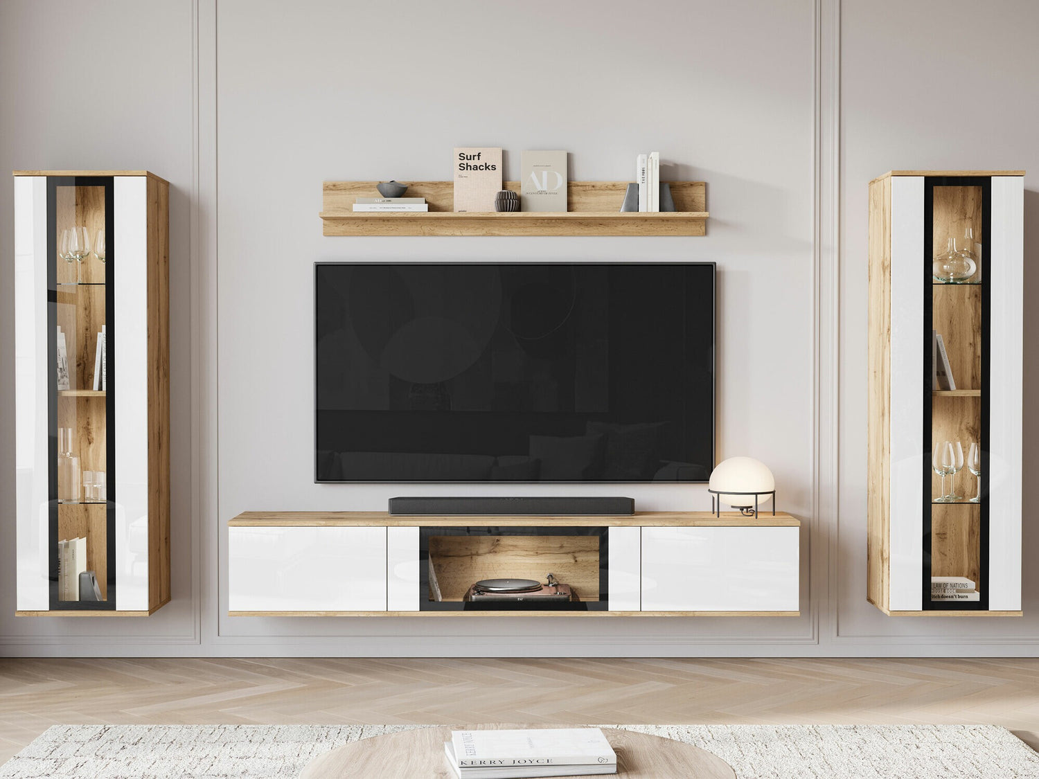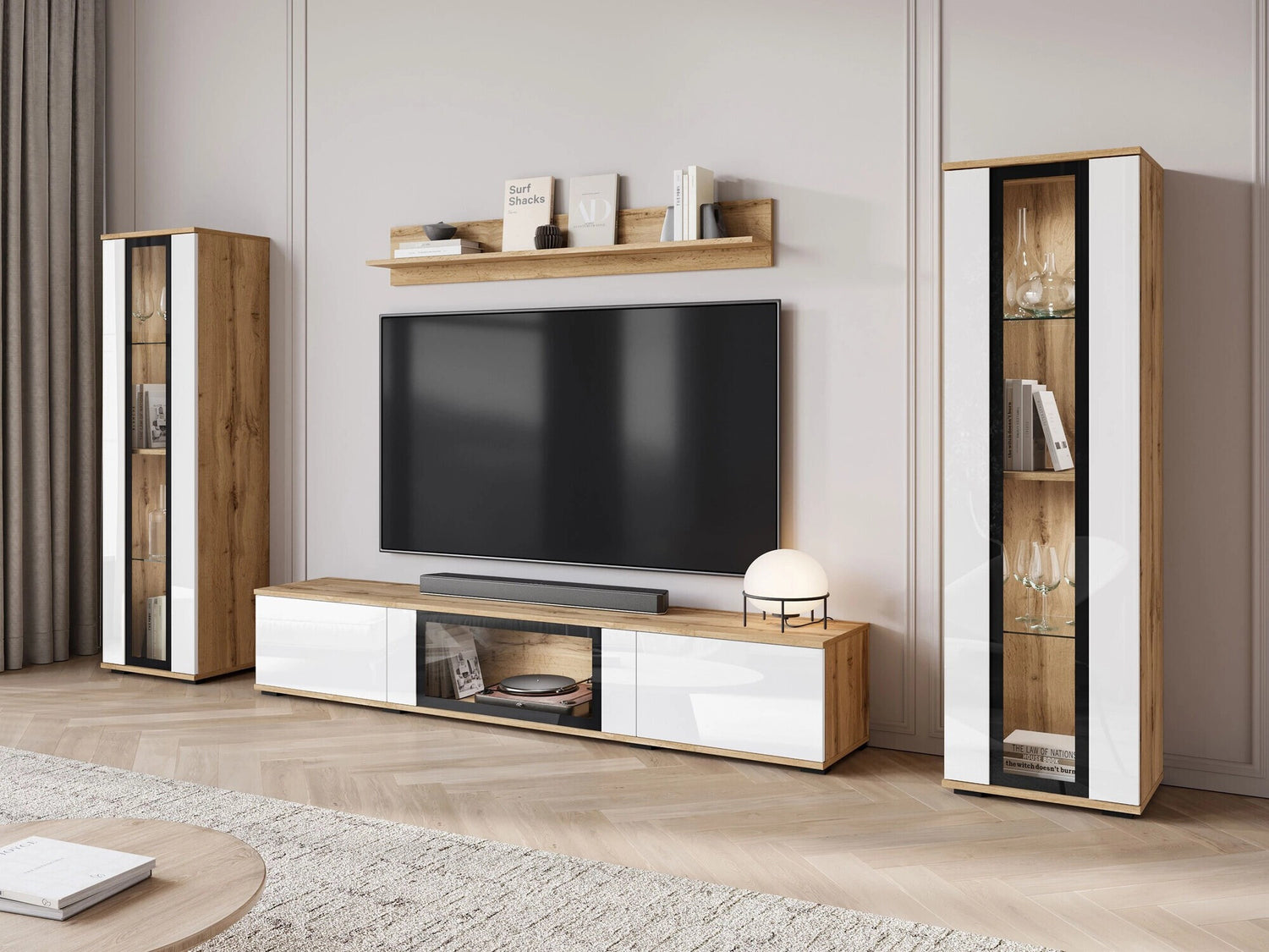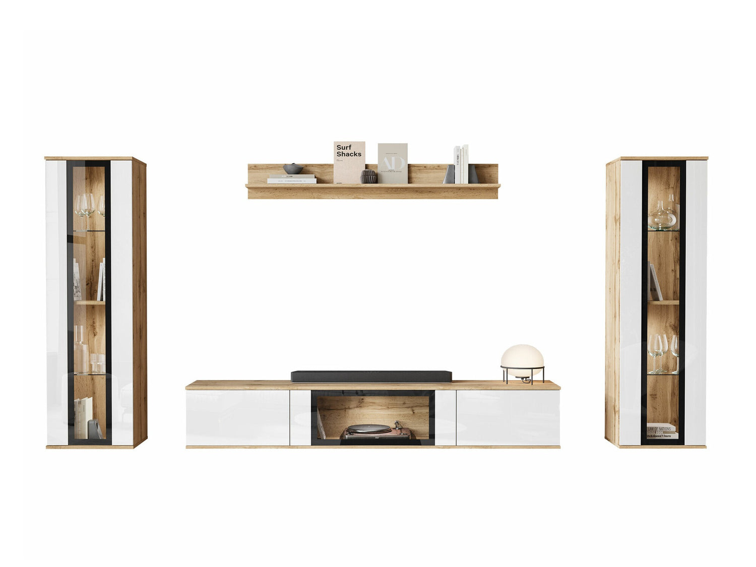 Nappali szett CARO, Szín: Wotan tölgy + Fényes fehér, Led világítás: Igen