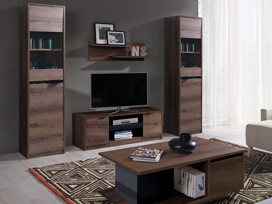 Nappali szett Denver (Verdek I), Led világítás: Nem, Szín: Monastery tölgy + Fényes fekete