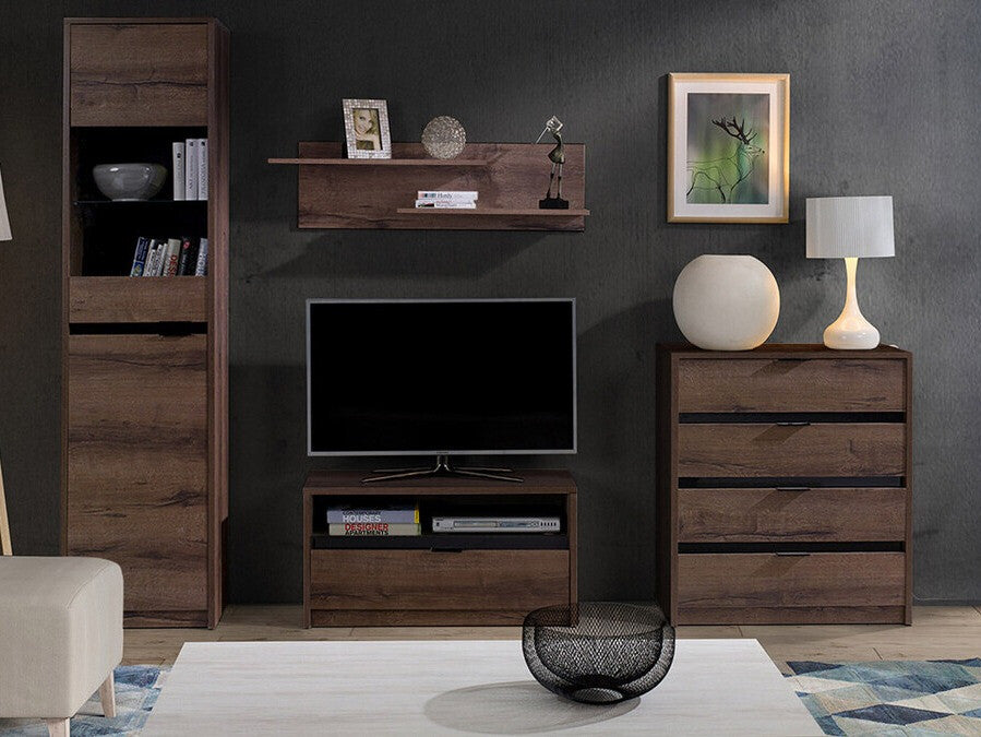 Nappali szett Denver (Verdek II), Led világítás: Nem, Szín: Monastery tölgy + Fényes fekete