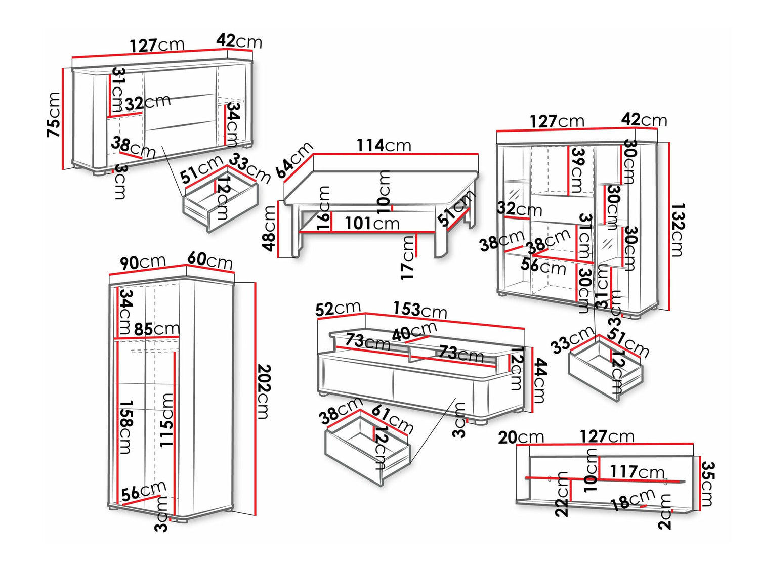 Nappali szett FILL I, Komód: Igen, Led világítás: Nem