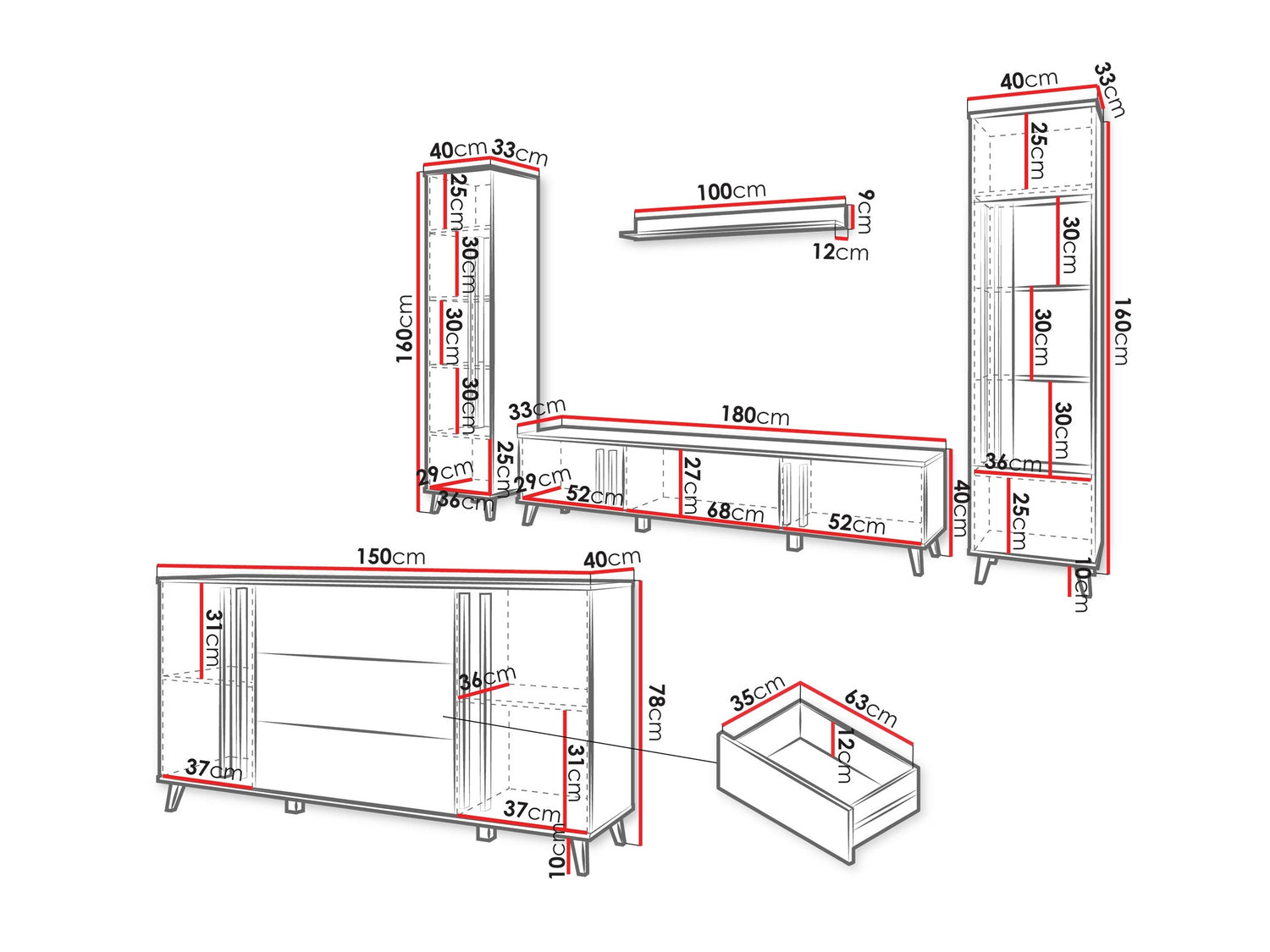 Nappali szett HELSINKI IV, Szín: Grafit, Led világítás: Igen