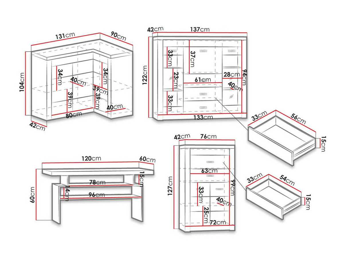 Komód méretek127 x 76 x 42 x 131 x 42 cm