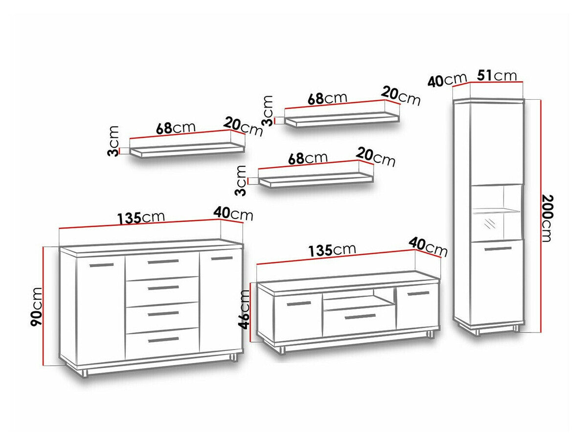 Függő polcméretek3 x 68 x 20 cm