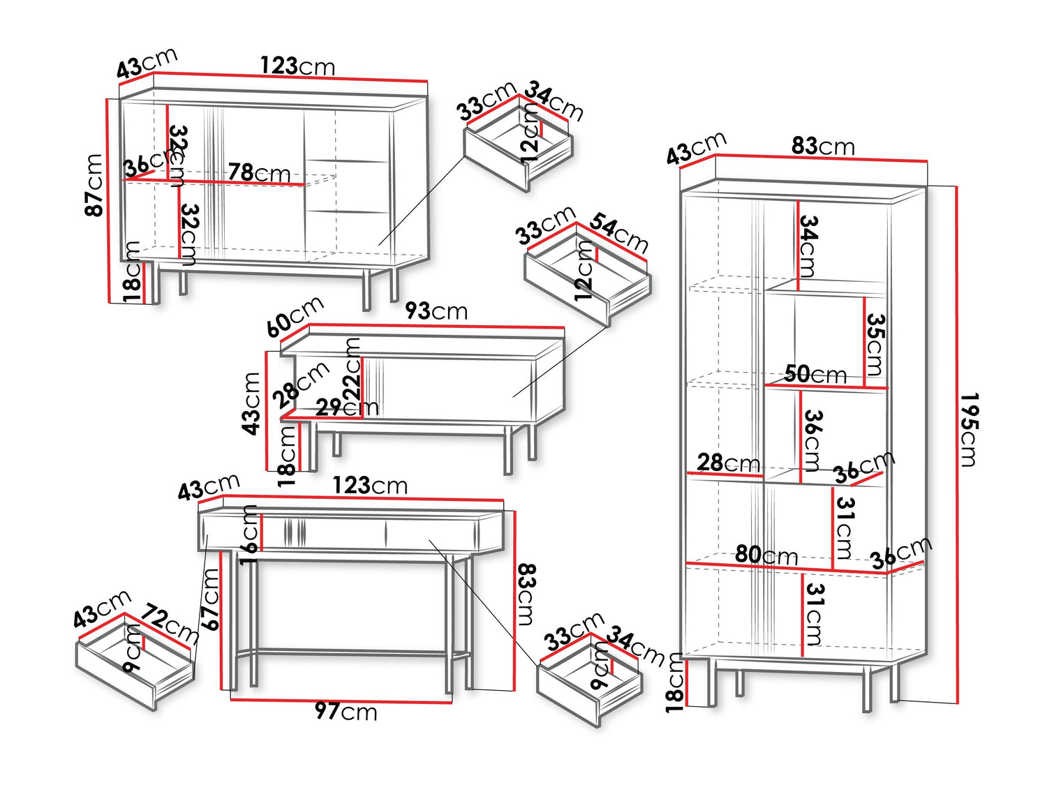 Komód méretek87 x 123 x 43 cm