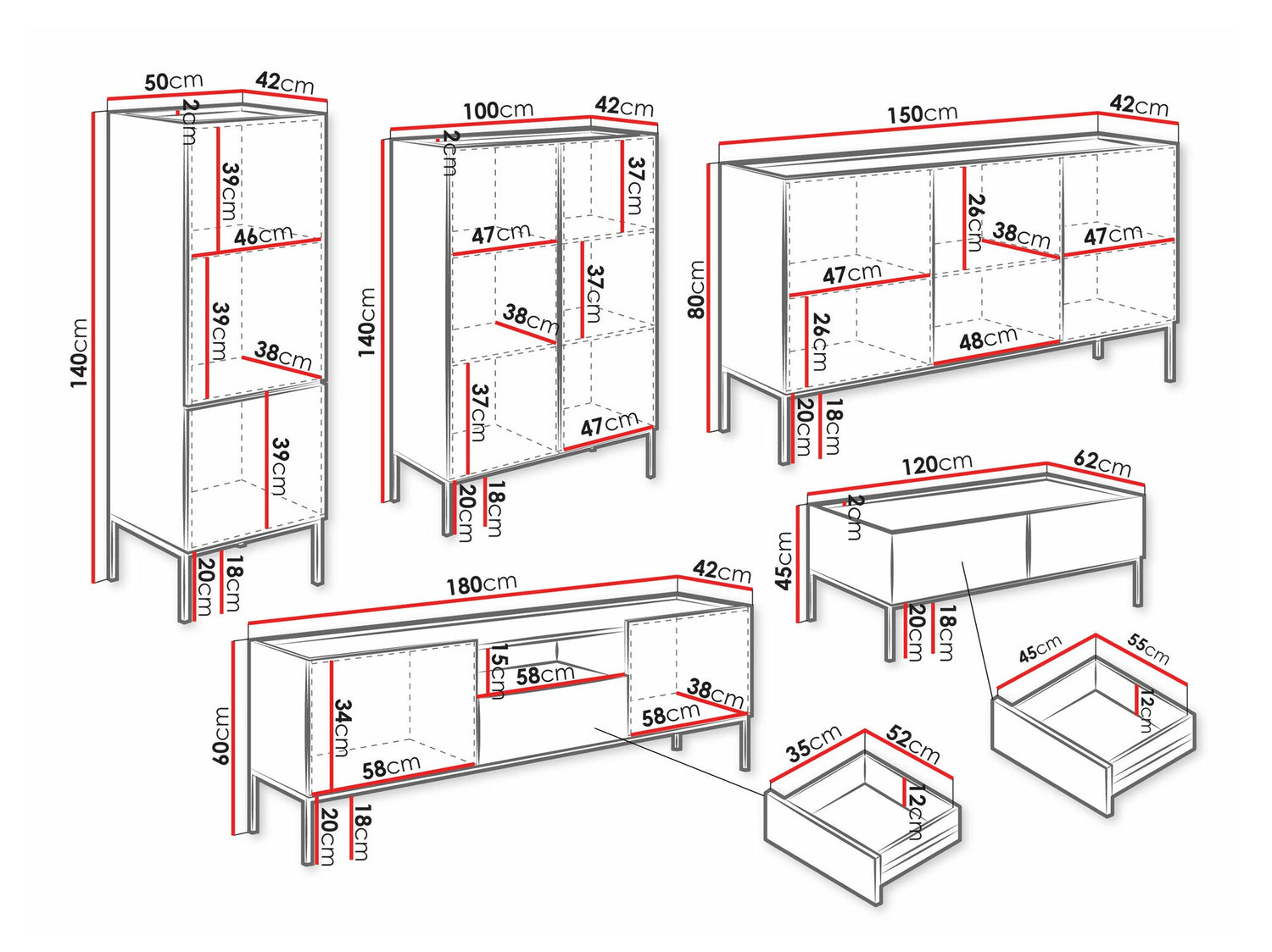 Polcos szekrény140 x 100 x 42 x 50 x 42 cm