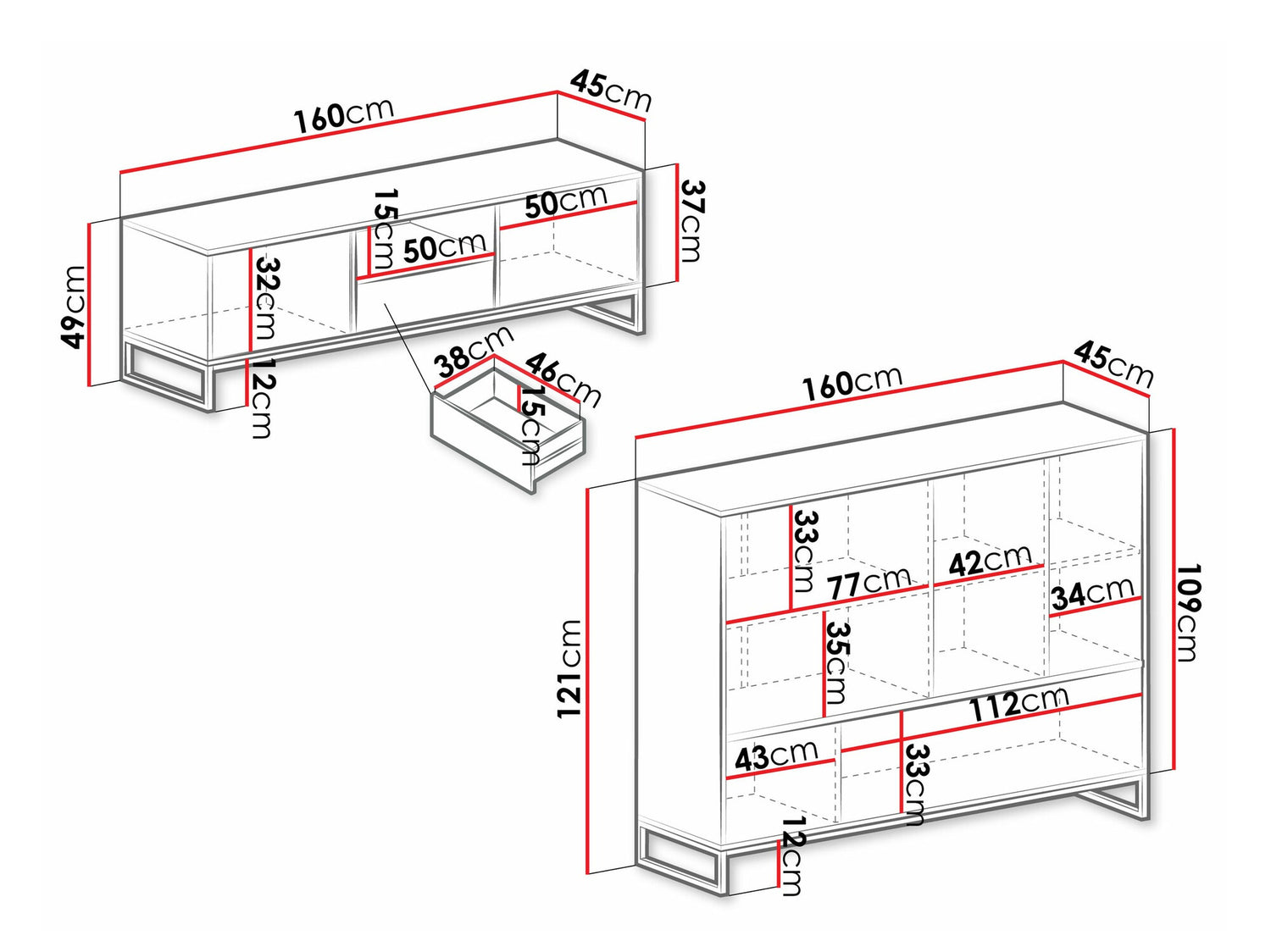 TV asztal méret49 x 160 x 45 cm
