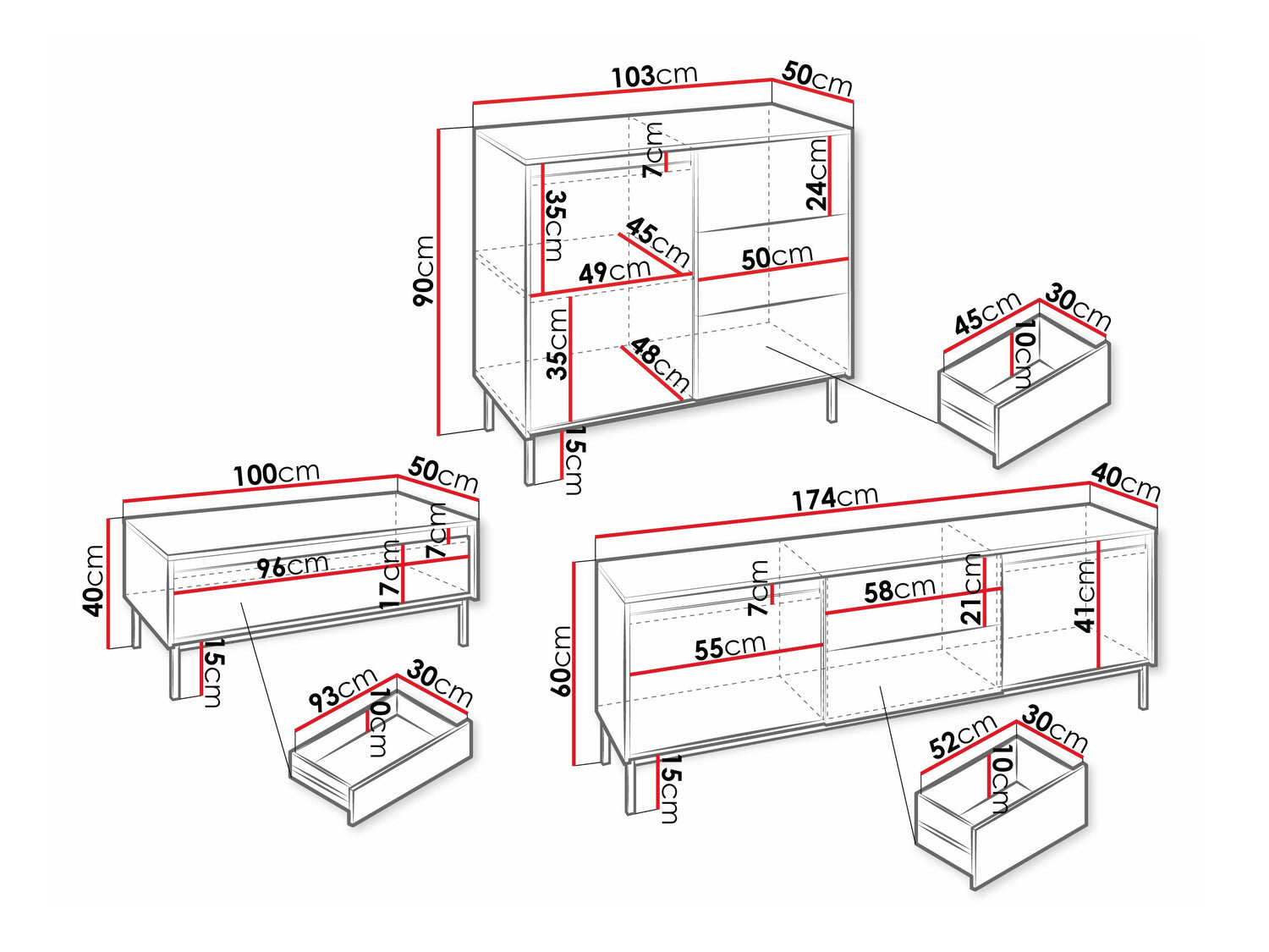 TV asztal méretei60 x 174 x 40 cm