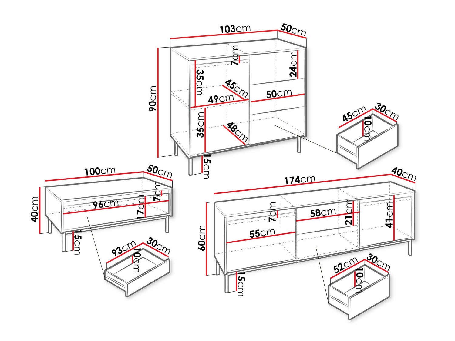 TV asztal méretei60 x 174 x 40 cm