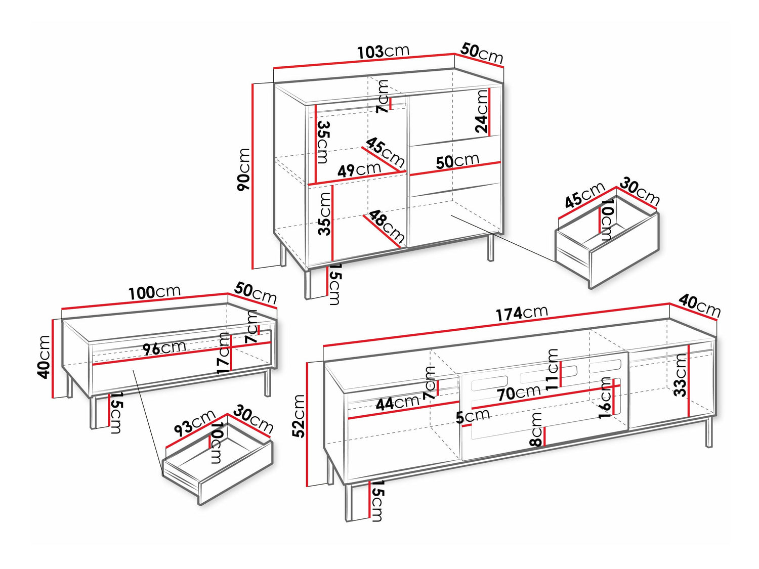TV asztal méretei52 x 174 x 40 cm