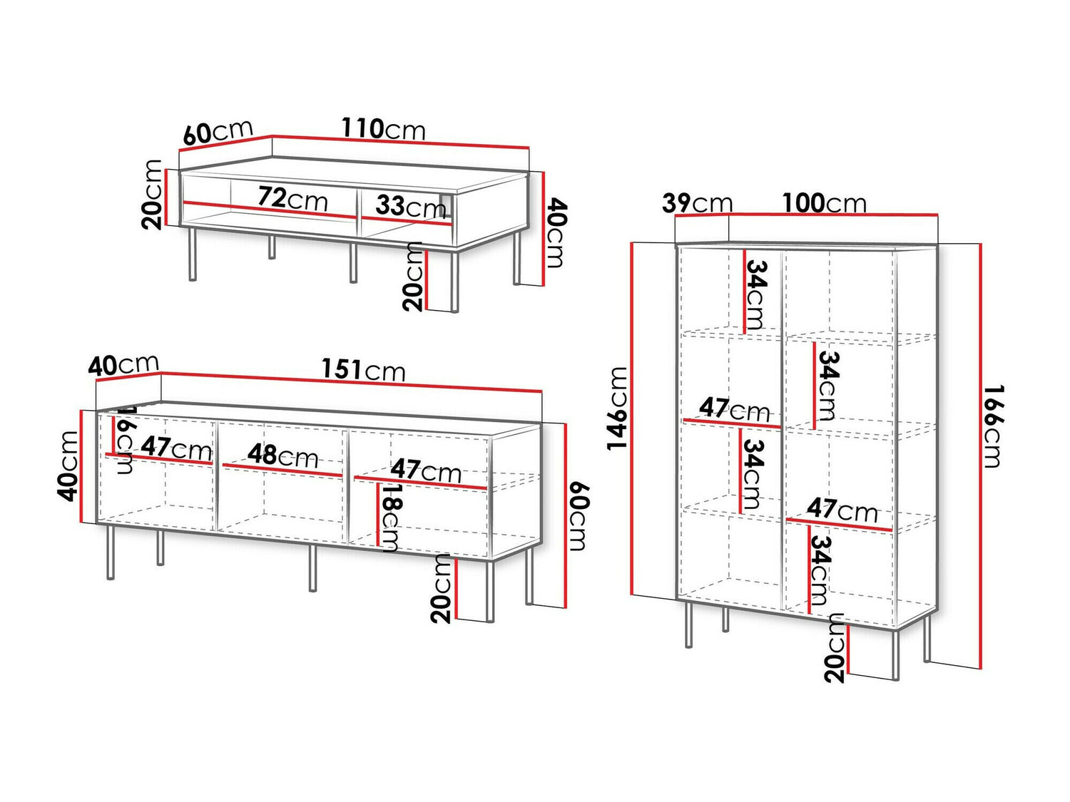 Nappali szett Meble PALAZZO BIS I, Szín: Fehér, Szekrény: Nem