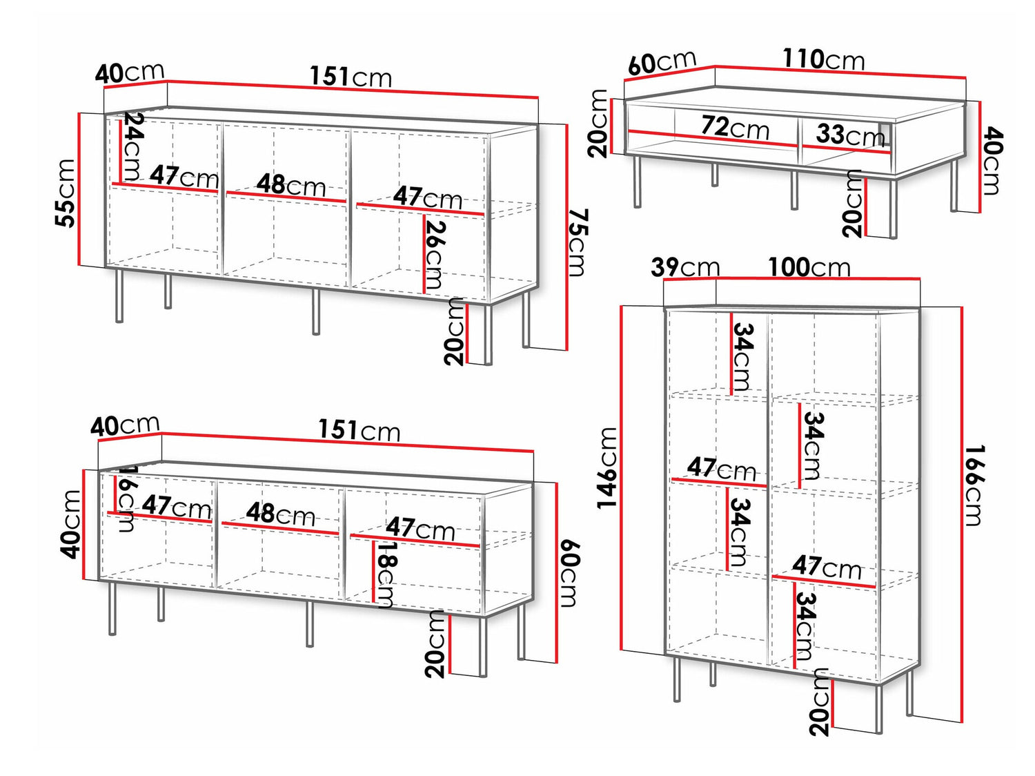 Nappali szett Meble PALAZZO BIS I, Szín: Fekete, Szekrény: Igen
