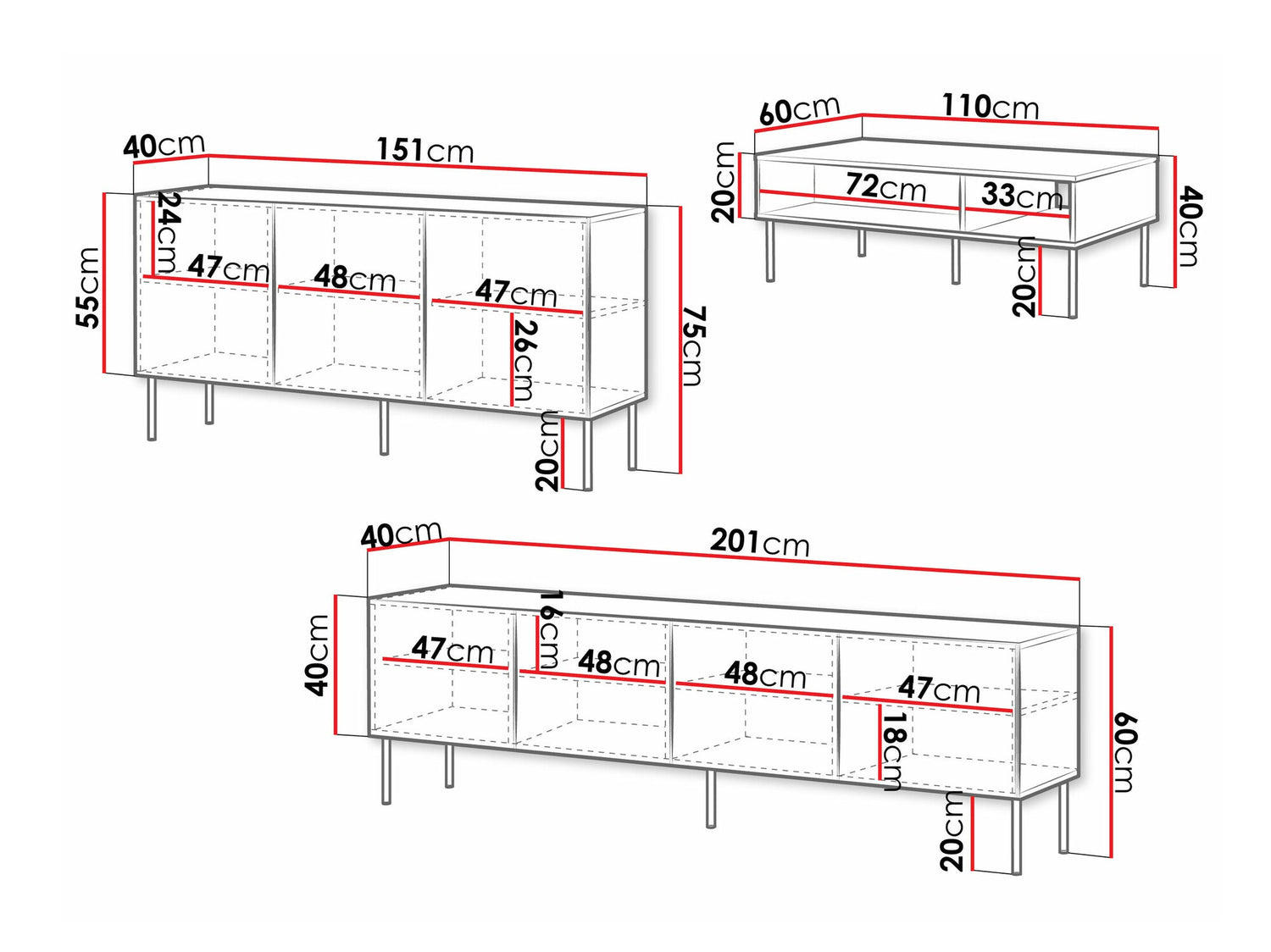 Nappali szett Meble PALAZZO BIS II, Szín: Fekete, Dohányzóasztal: Igen
