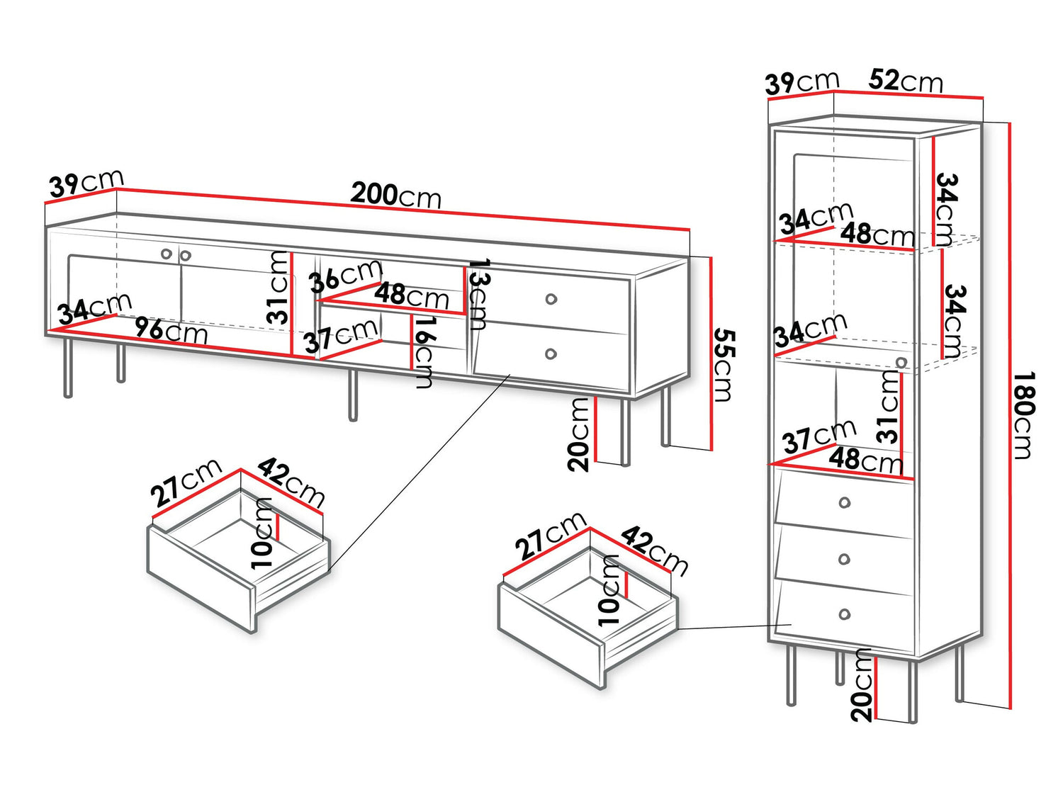 TV asztal méret55 x 200 x 39 cm
