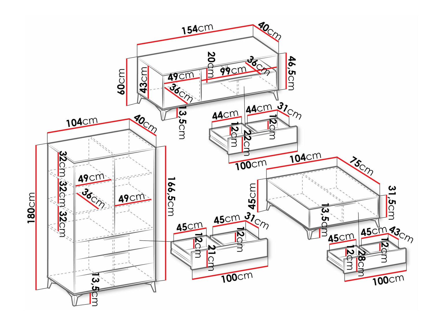 TV asztal méret60 x 154 x 40 cm