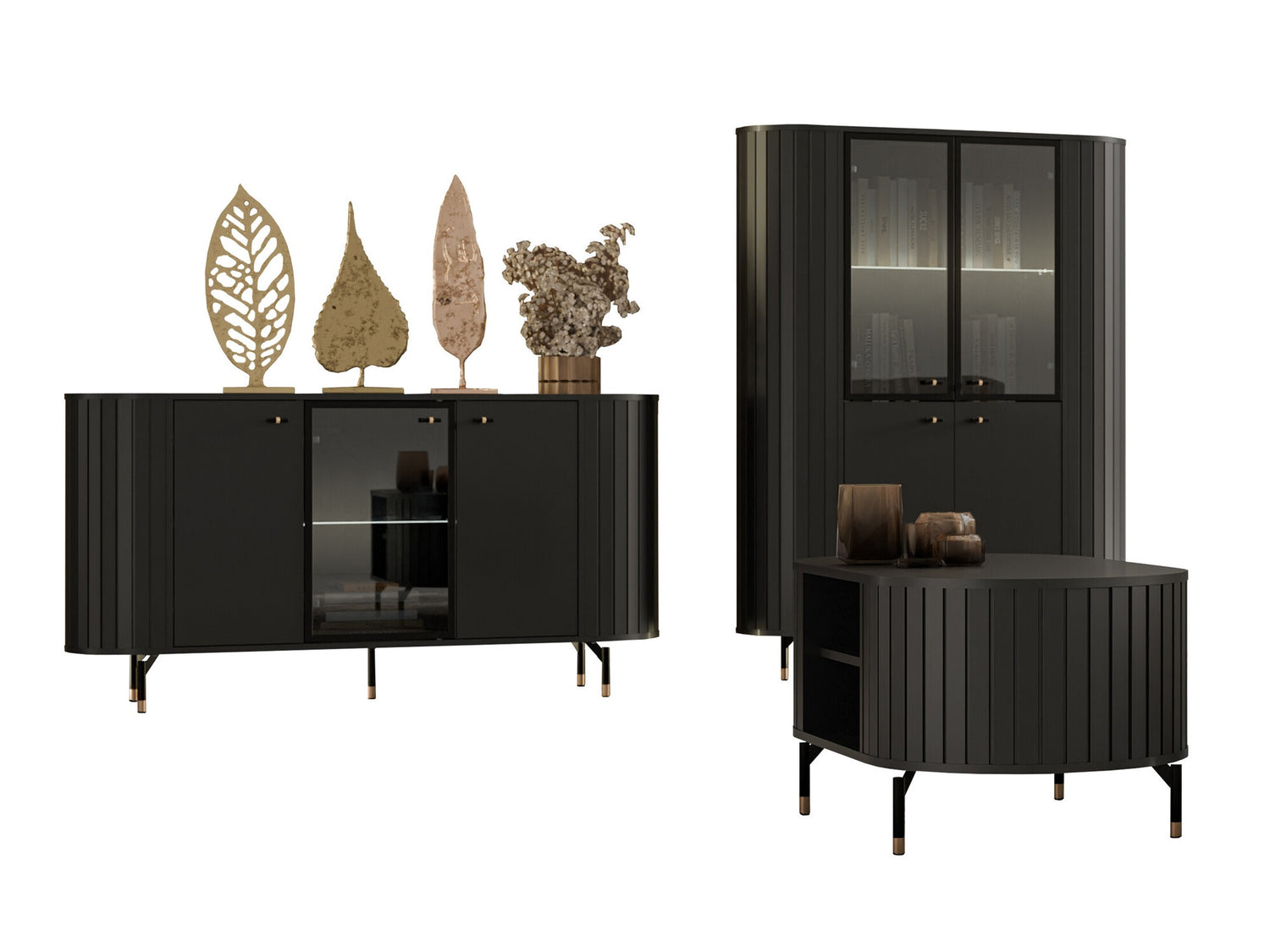 Nappali szett Meble ZANTE IV, Szín: Fekete, Led világítás: Igen