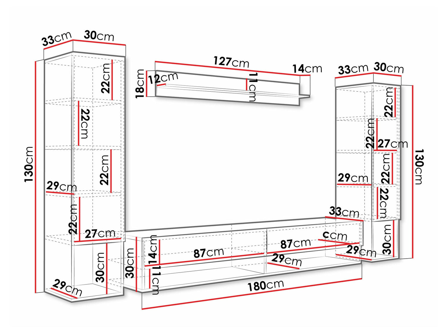 Nappali szett Meblościanka AMADEO II, Szín: Wotan tölgy + Fényes fehér, Led világítás: Igen