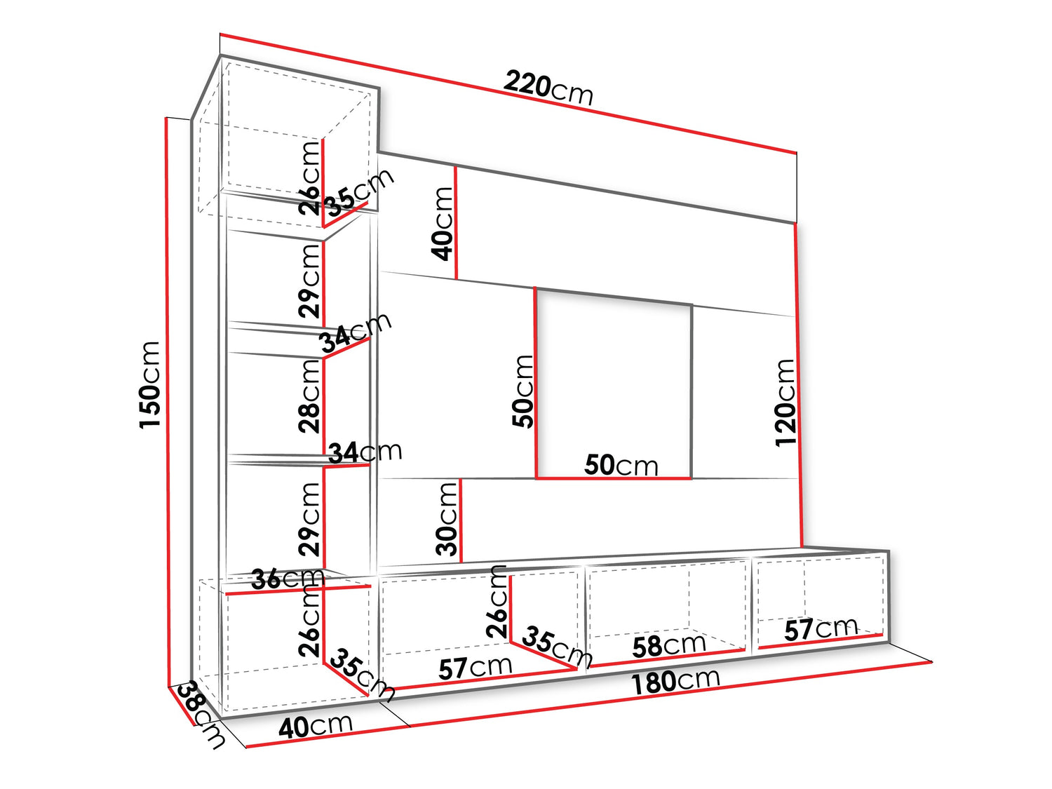 150 x 180 x 38 cm