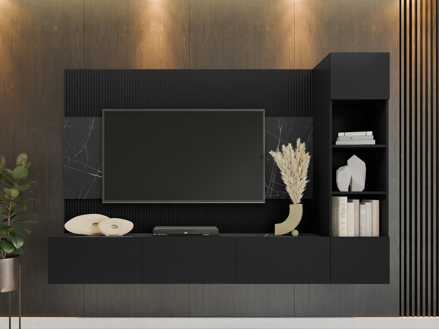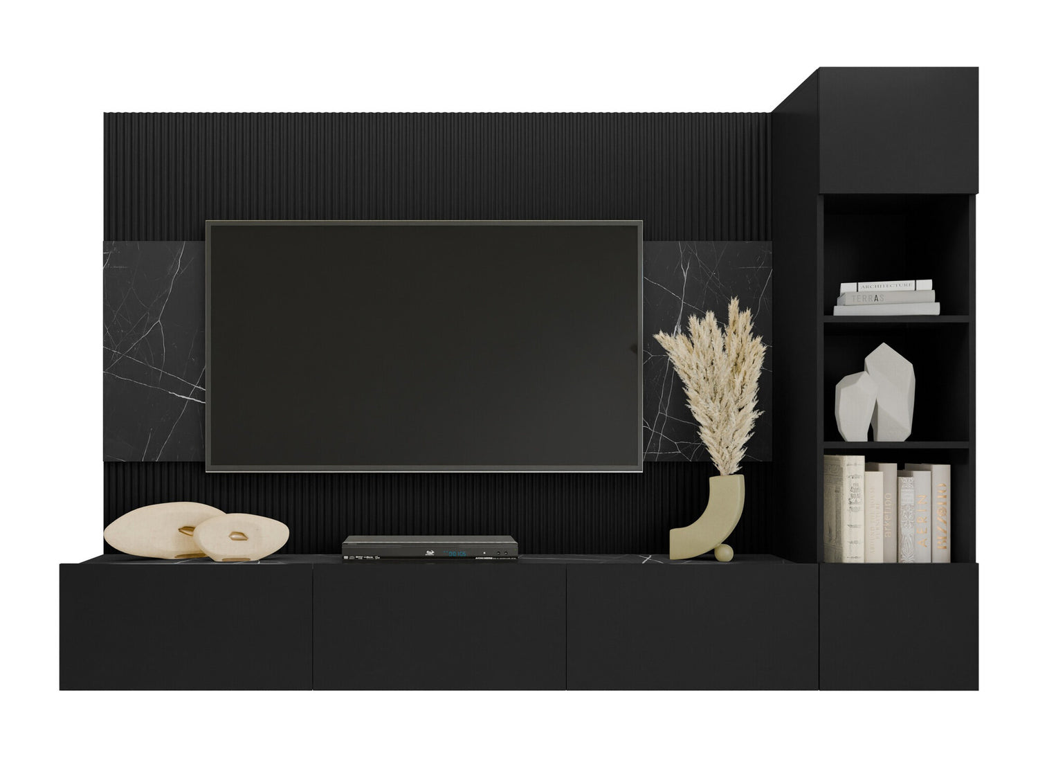 Nappali szett Meblościanka DEROMI II, Szín: Fekete + Fekete márvány