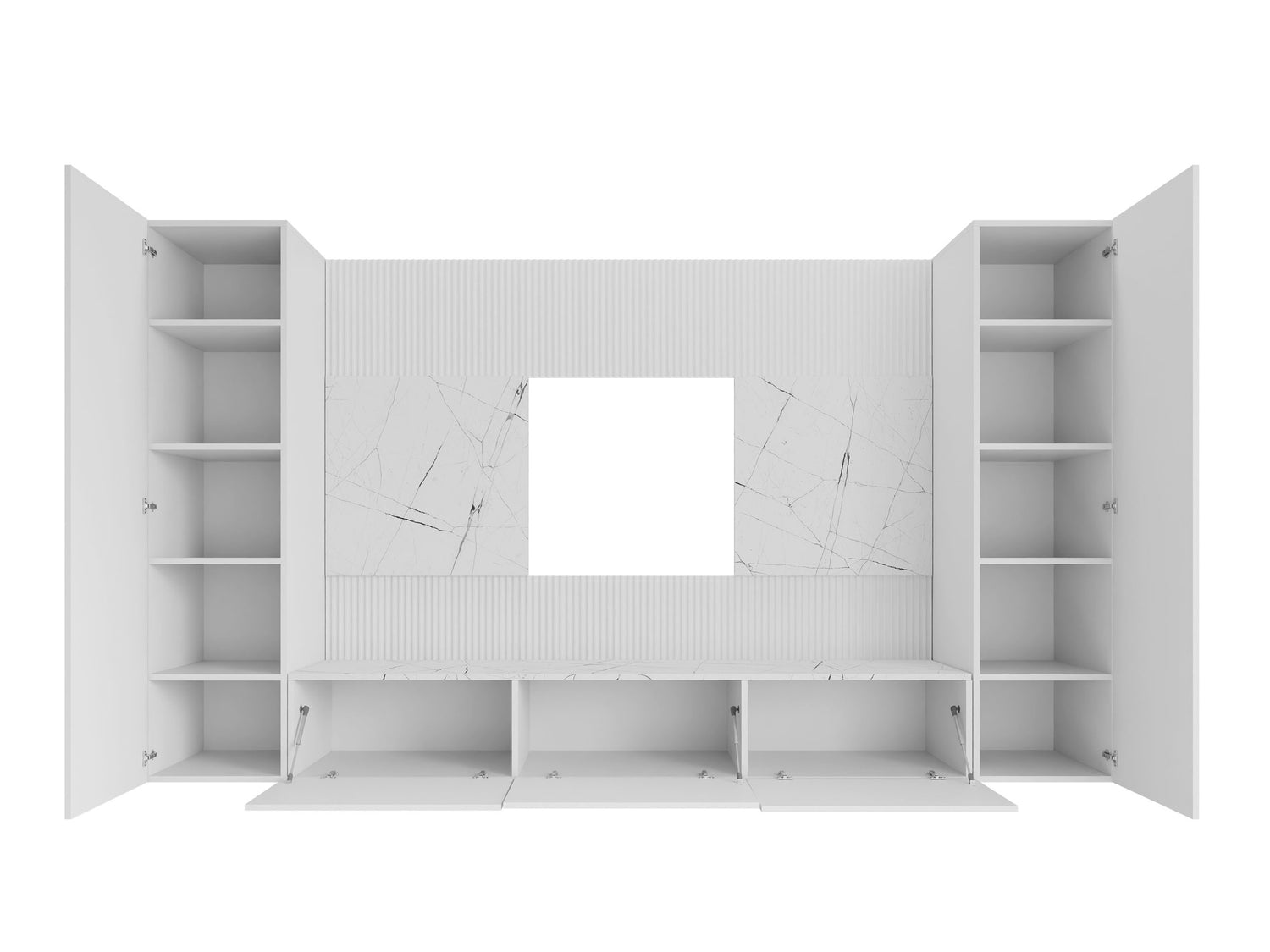 Nappali szett Meblościanka DEROMI V, Szín: Fehér + Fehér márvány