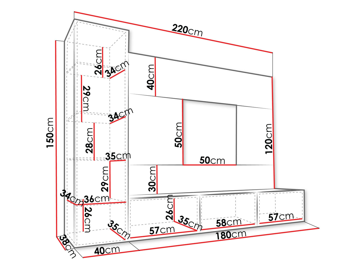 150 x 180 x 38 cm