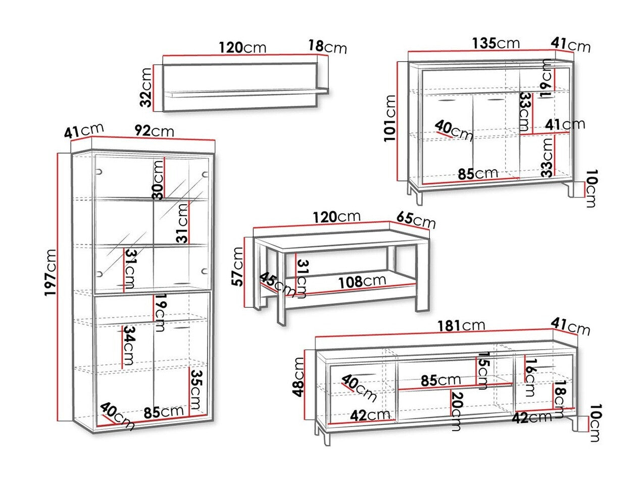 Nappali szett MEDIOLAN III (Sarged III), Szín: Világos fa, Led világítás: Igen, Lábak: Igen