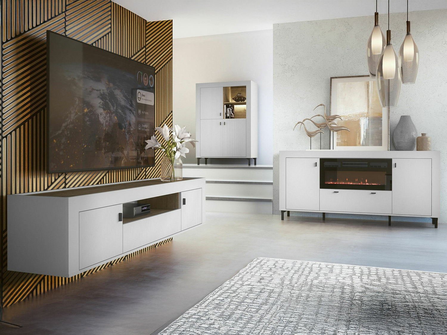 Nappali szett MOSSA IV, Szín: Matt fehér, Led világítás: Igen