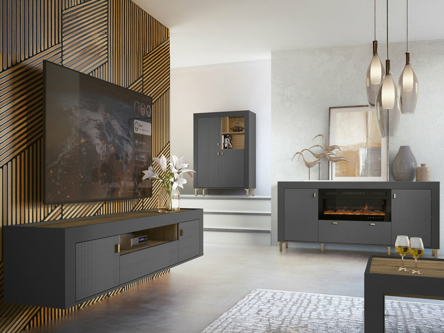 Nappali szett MOSSA IV, Szín: Matt fekete, -világítás: Nem