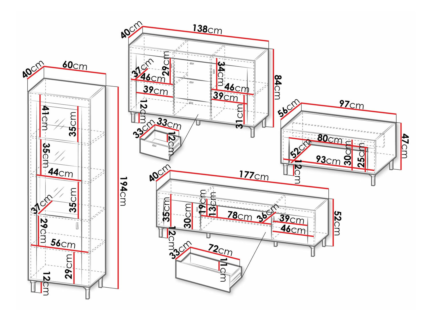 Komód méretek83.6 x 137.2 x 39.8 cm