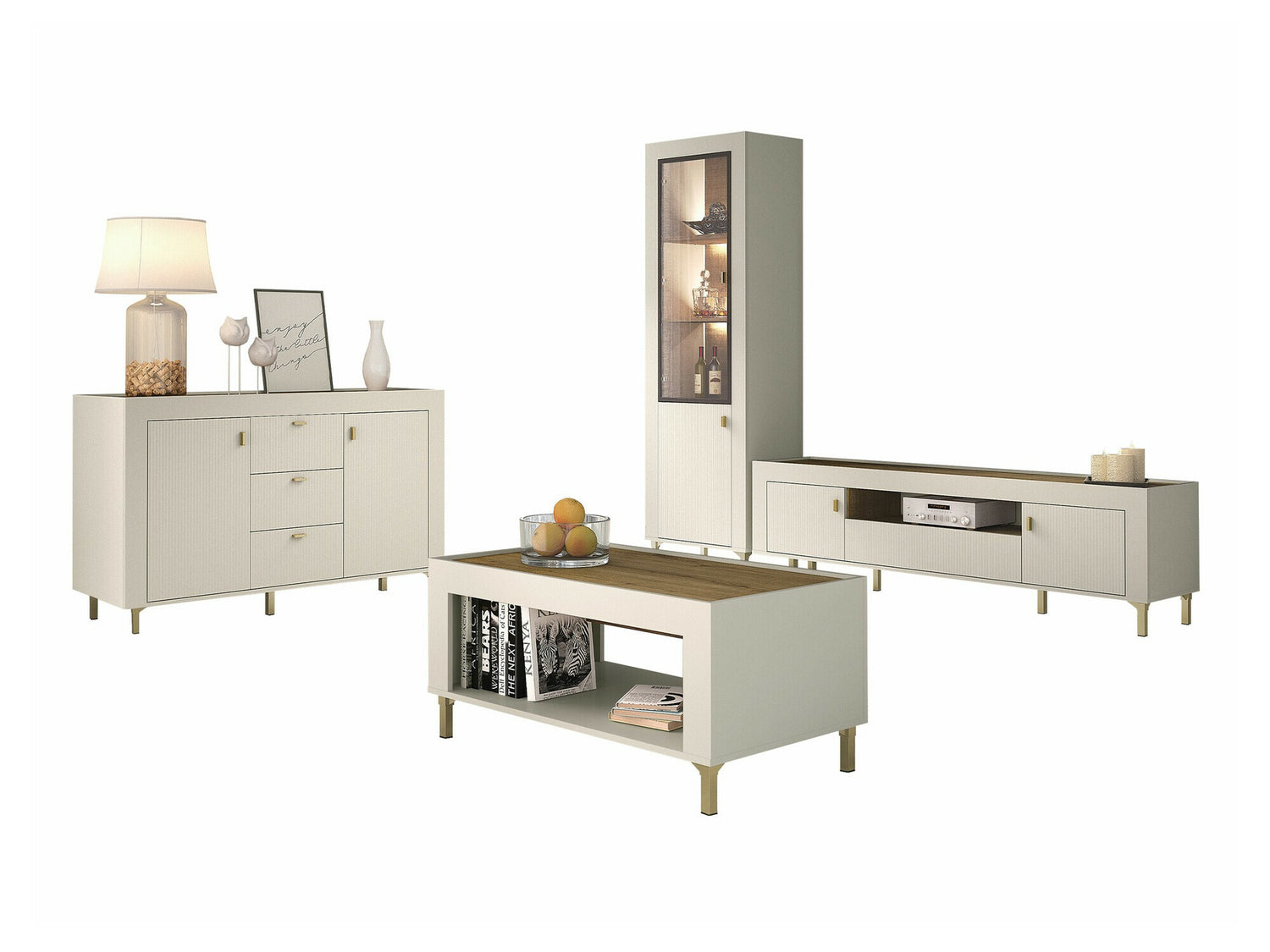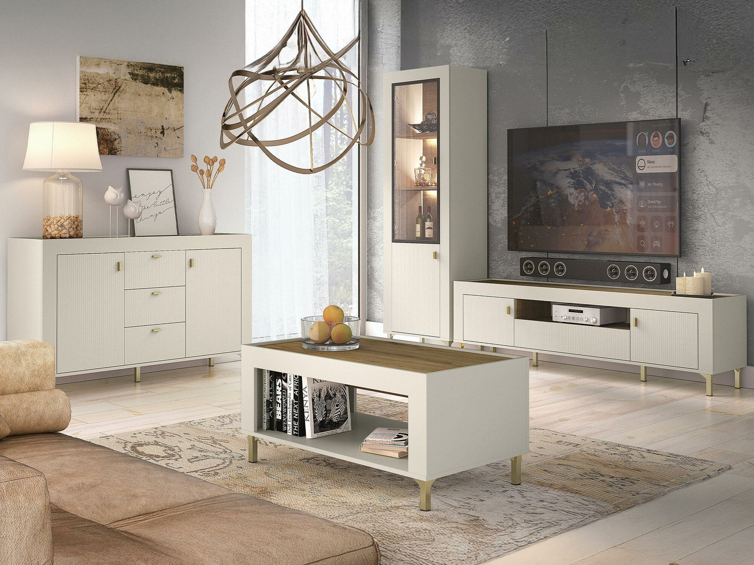 Nappali szett Mossa, Szín: Kasmír, Komód: Igen, Led világítás: Igen