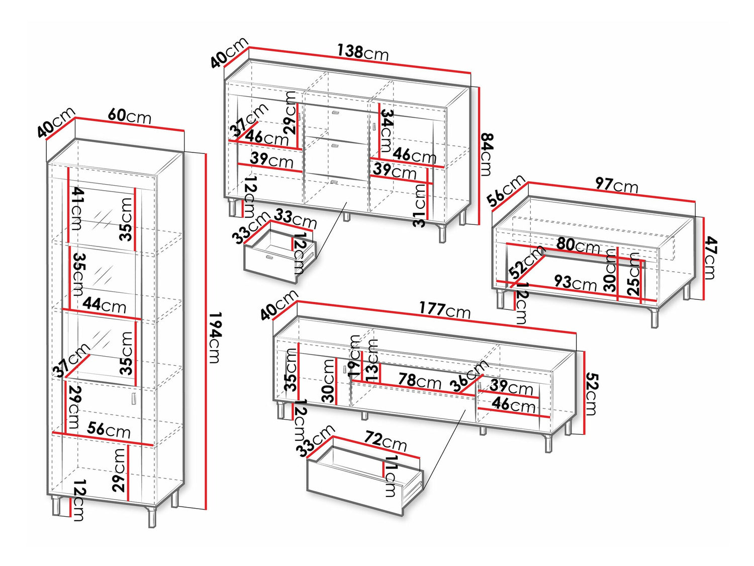 Komód méretek83.6 x 137.2 x 39.8 cm